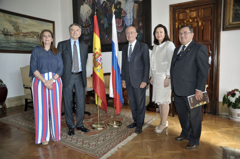 En el Salón de los Espejos, inauguración de las XI Jornadas de Seguridad, Defensa y Cooperación, sobre la visión de la política exterior rusa en referencia a los temas de seguridad en Europa y el Mediterráneo. Junto al embajador de Rusia en España, Yuri Korchagin; y el director del Foro para la Paz en el Mediterráneo, Rafael Vidal.