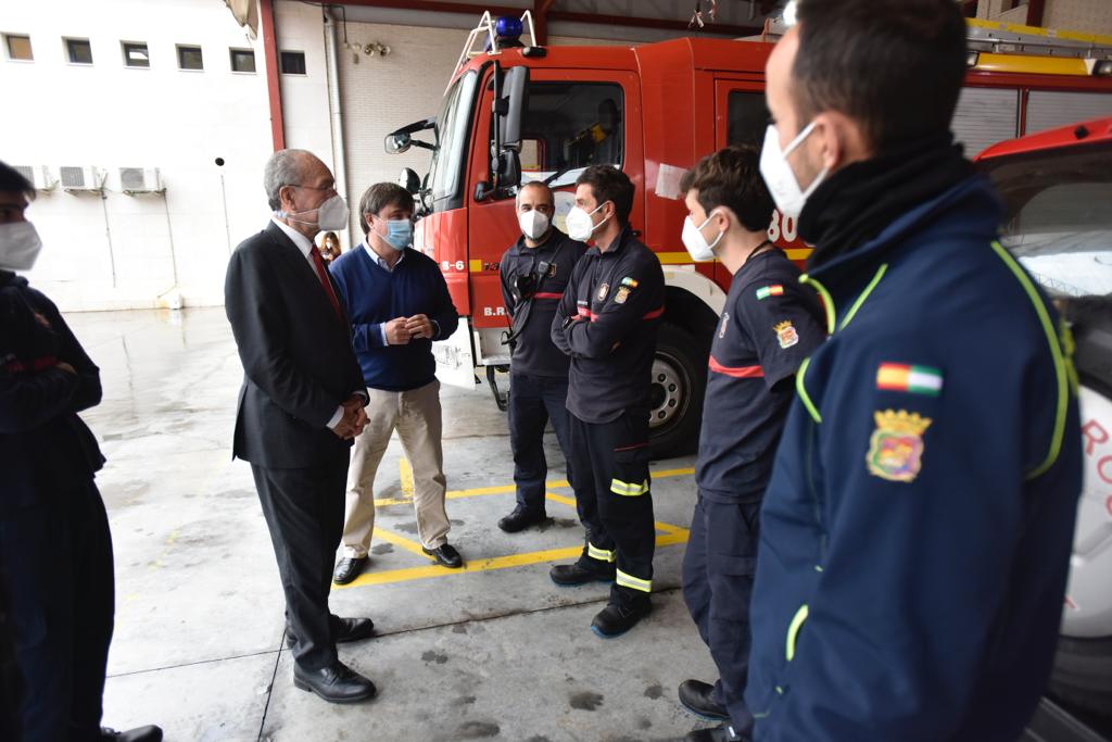 El alcalde de Málaga asiste a la entrega de los menús solidarios a los vecinos del corralón de Santa Sofía en la barriada de la Trinidad.