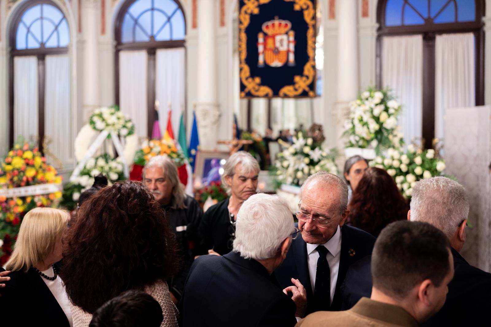 El alcalde visita la capilla ardiente del cantaor Antonio Fernández Díaz 'Fosforito' en el Salón de los Espejos del Ayuntamiento de Málaga.