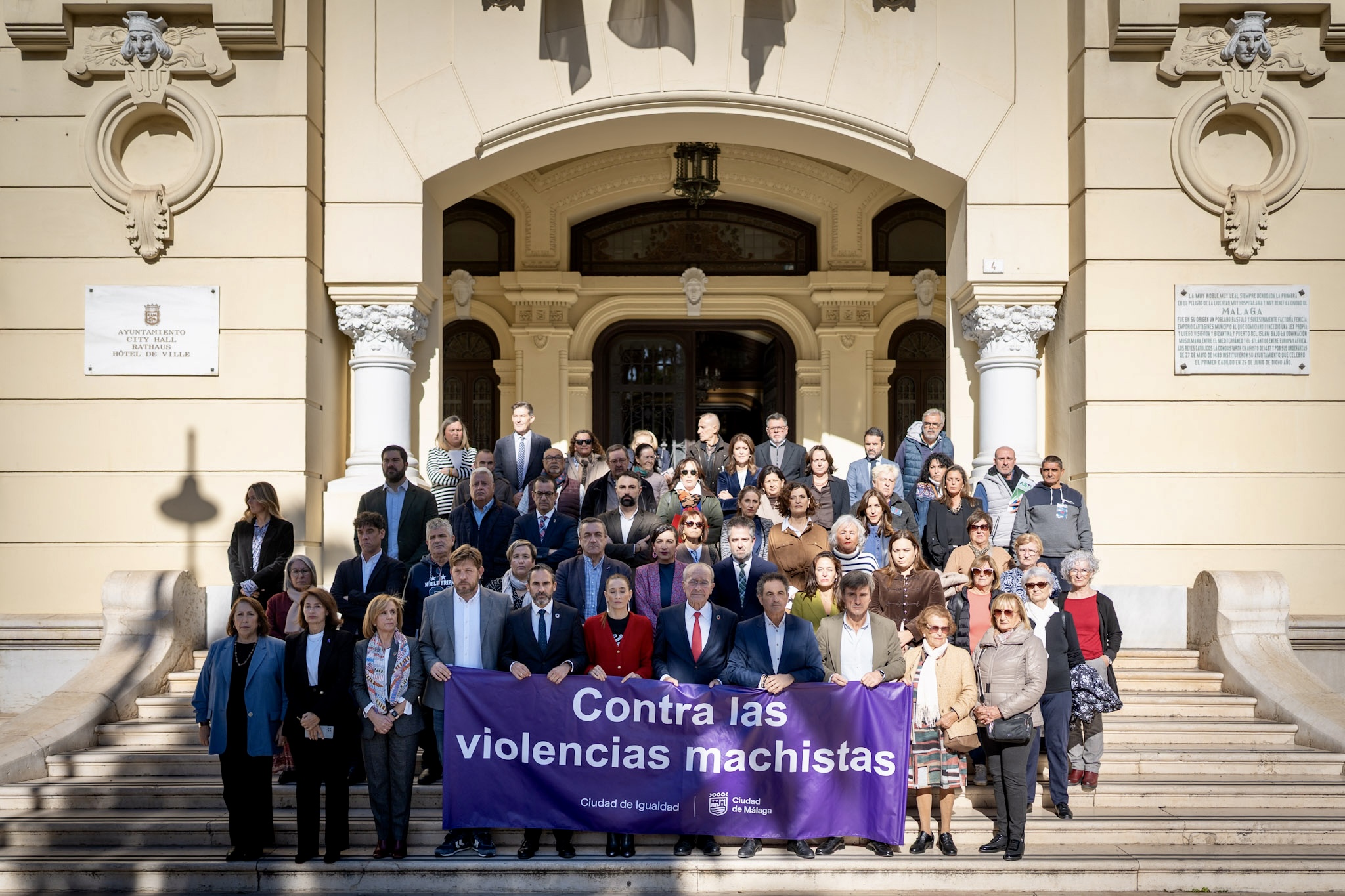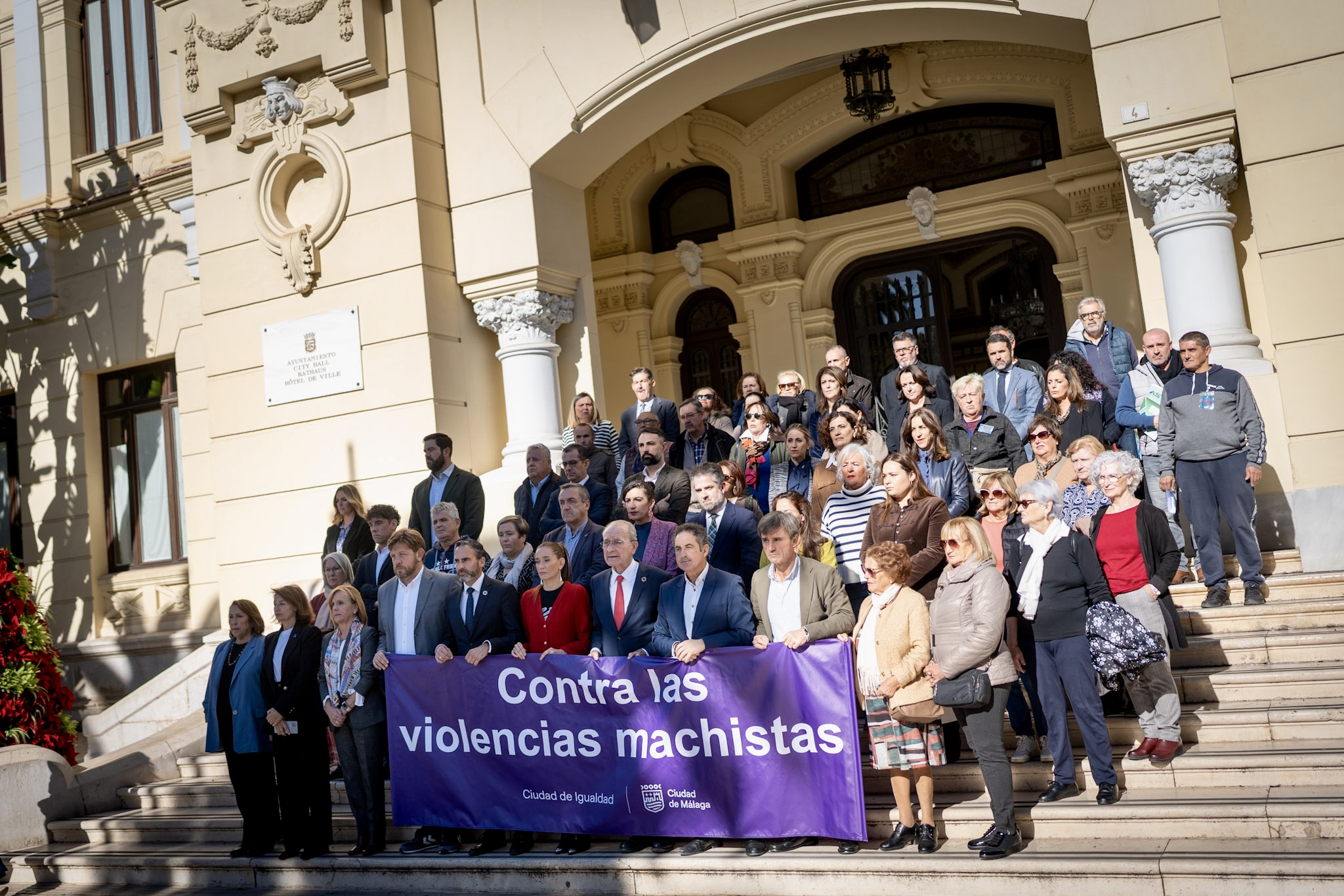 La Corporación Municipal ha mantenido este mediodía un minuto de silencio en memoria de la última víctima de la violencia machista, una mujer en Campillos (Málaga)