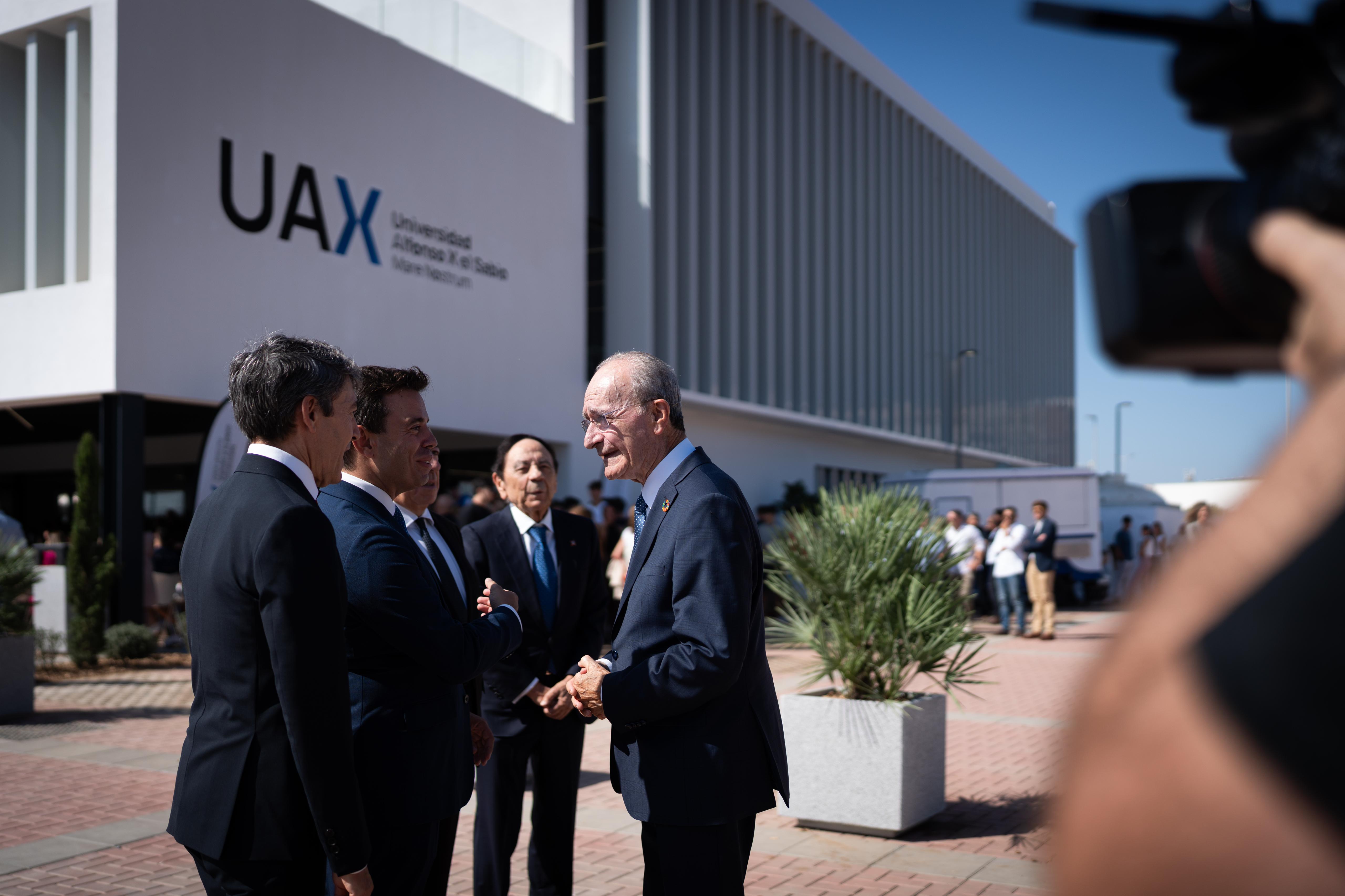 El alcalde de Málaga junto al presidente de la Universidad Alfonso X el Sabio (UAX), el rector de la UAX, y el delegado territorial en Málaga de la Consejería de Desarrollo Educativo de la Junta de Andalucía, asiste a la inauguración y acto de apertura del curso 2025/26 de la Universidad Alfonso X el Sabio Mare Nostrum.