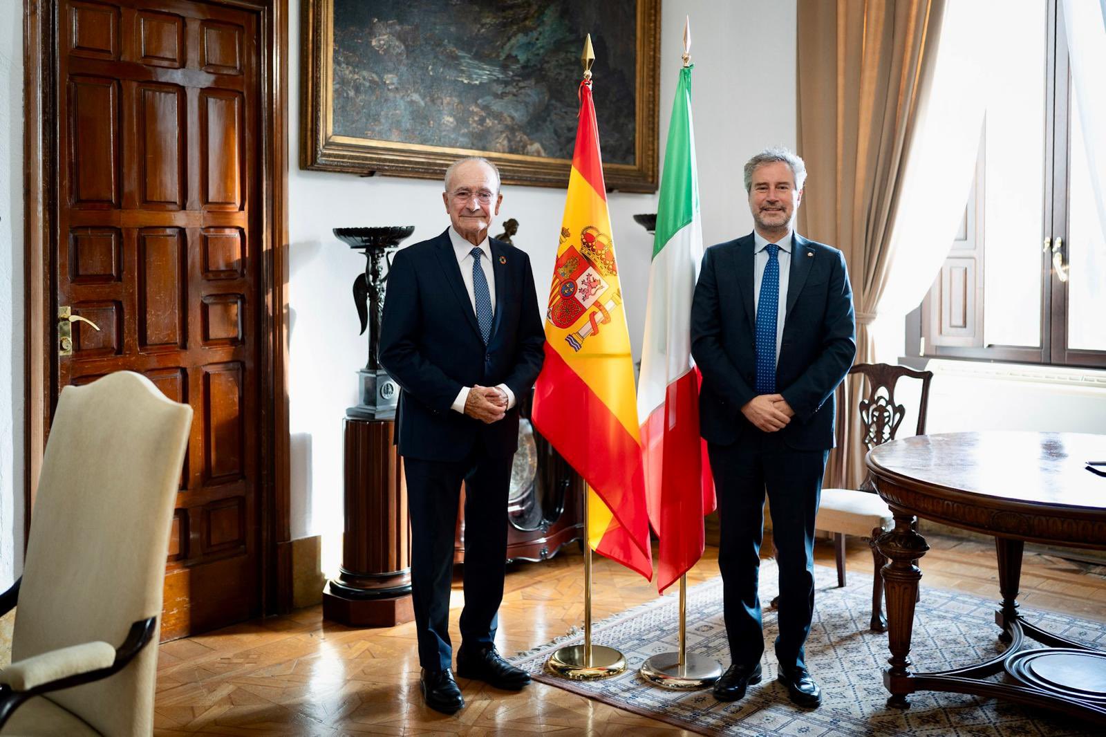 El alcalde de Málaga recibe en el Ayuntamiento la visita del alcalde de la ciudad italiana de Lucca, Mario Pardini.