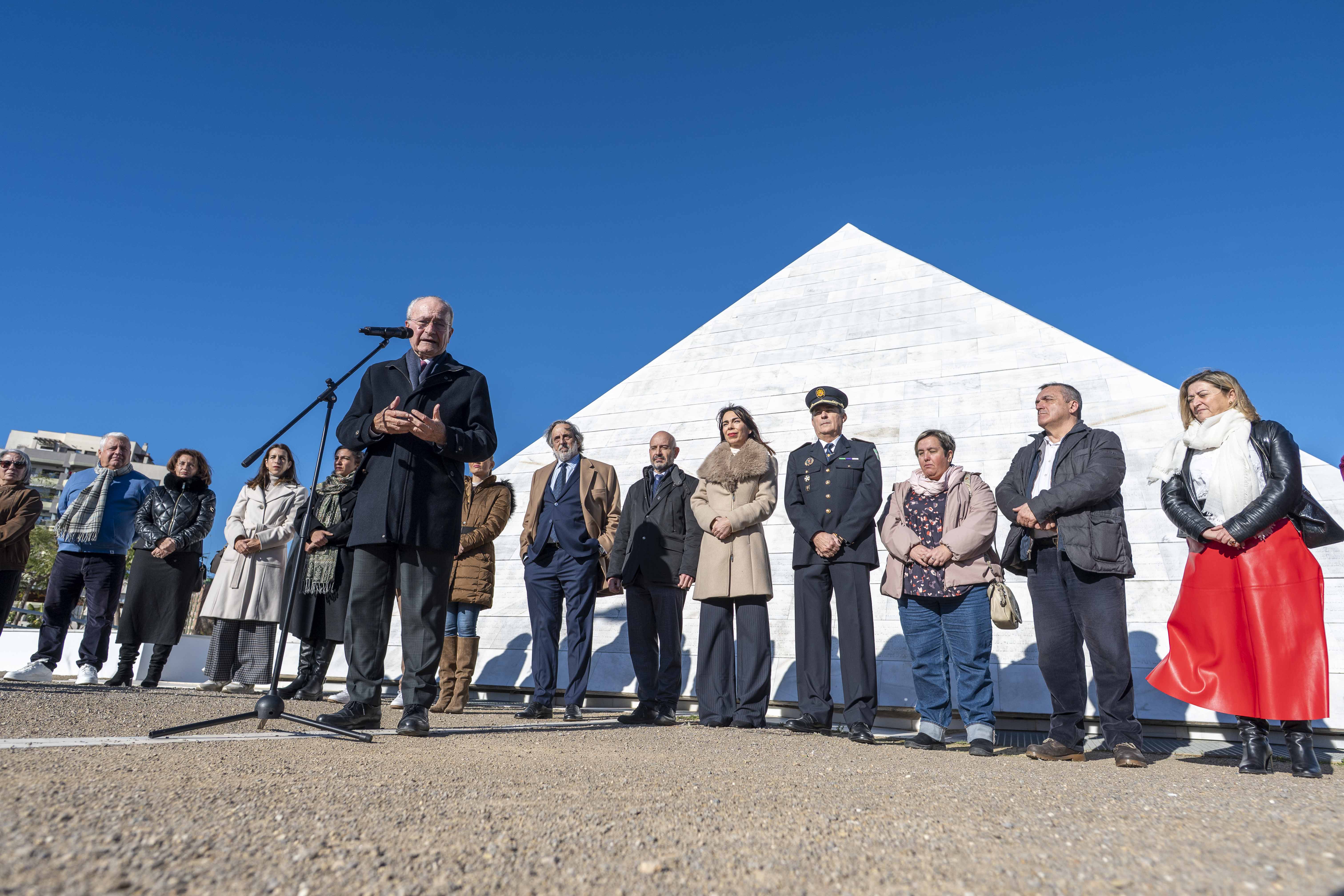 El alcalde de Málaga mantiene en la escalinata exterior del Ayuntamiento tres minutos de silencio, al hilo de la convocatoria realizada esta mañana por la Federación Española de Municipios y Provincias (FEMP) en memoria de los fallecidos en el accidente ferroviario producido en Adamuz (Córdoba).