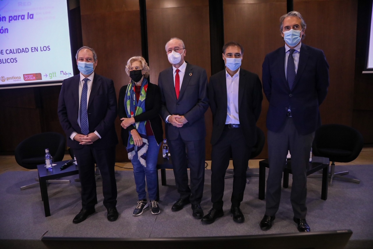 El alcalde de Málaga, Francisco de la Torre, ha moderado esta mañana, en el marco de las XI Jornadas de Modernización y Calidad en la Administración Local (JOMCAL) que se celebran en Fycma, la mesa redonda denominada ‘Visión de los exalcaldes’ en la que han participado los que fueron regidores de Madrid, Barcelona y Santander, Manuela Carmena, Jordi Hereu e Íñigo de la Serna, respectivamente. En el acto también ha estado presente Olivié Bayón, director general de Gobernanza Pública del Ministerio de Hacienda y FunciónPública.
