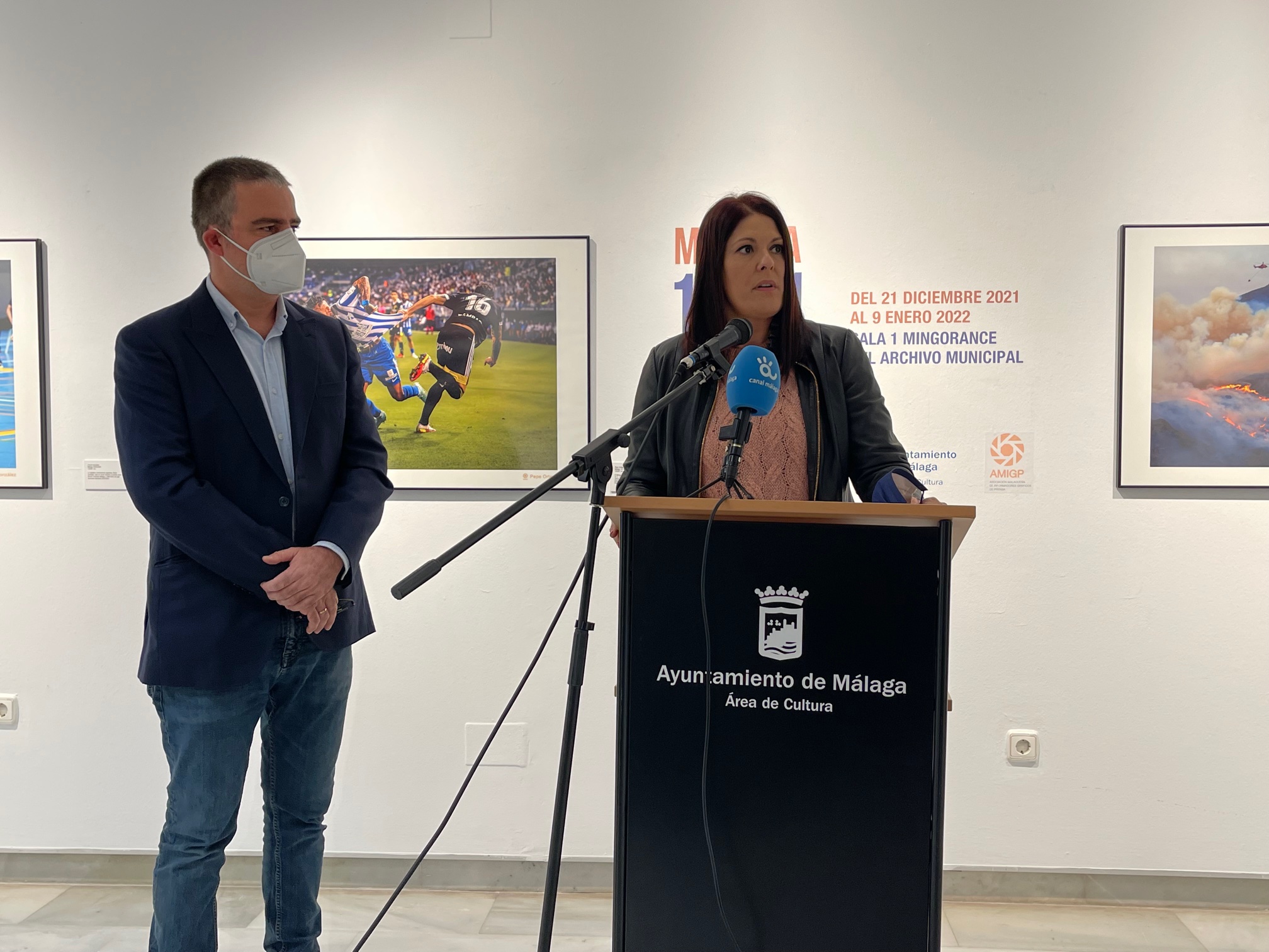 Adjuntamos fotos de la inauguración la muestra titulada ‘Málaga 1921-2021: dos años en imágenes’ que recoge una selección de imágenes de fotoperiodistas malagueños realizadas a lo largo de 2021 que dialogan con otras del Archivo Municipal, datadas hace un siglo, organizada por el Área de Cultura junto con la Asociación Malagueña de Informadores Gráficos de Prensa (AMIGP) que ha tenido lugar esta tarde con las participación de la concejala de Cultura, Noelia Losada junto al presidente de la asociación, Daniel Pérez.