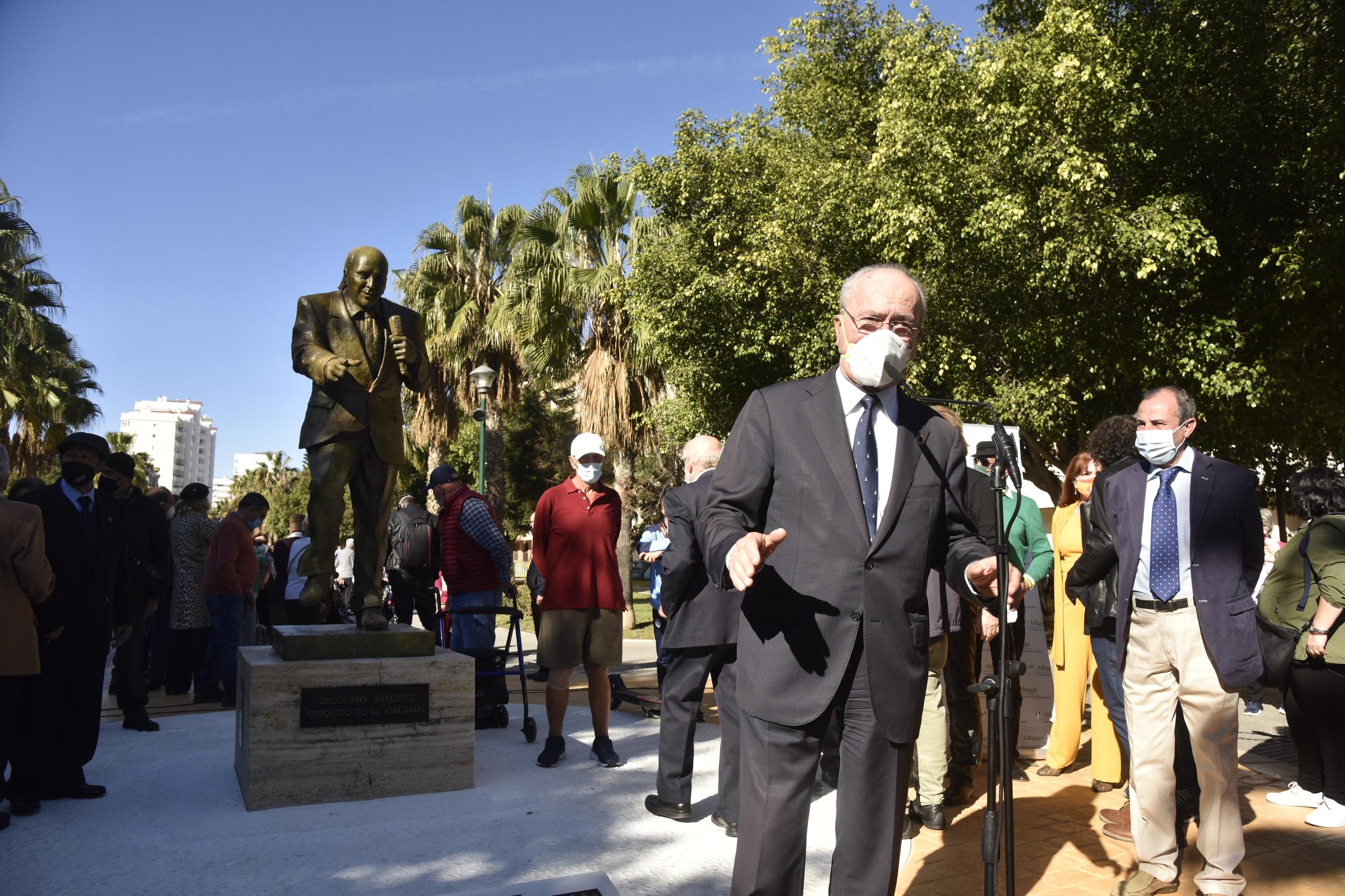 El alcalde de Málaga, Francisco de la Torre, acompañado de miembros de la Corporación Municipal, ha asistido esta mañana a la inauguración de la escultura homenaje a Chiquito de la Calzada ubicada en el parque que lleva su nombre (desde 2004) junto al Paseo Marítimo de Poniente, parque Gregorio Sánchez. En este homenaje, organizado por la asociación del Humorismo Español (ASHUMES), se ha descubierto la escultura de bronce realizada por el escultor Ramón Chaparro y cuyas obras necesarias para su instalación han sido realizadas por el Consistorio, a través de la Gerencia Municipal de Urbanismo. La ejecución del basamento de la escultura ha supuesto una inversión municipal de 20.000 euros. Este homenaje a Chiquito de la Calzada, icono del humor español, en el que colabora el Ayuntamiento de Málaga, se une a los ya recibidos, algunos a título póstumo, como la concesión de la Medalla de la Ciudad (octubre de 2018), el nombramiento de Hijo Predilecto de la Ciudad de Málaga (octubre de 2018) y el reciente homenaje, en el cuarto aniversario de la muerte del humorista y cantaor, con la colocación de una placa del plan “Málaga hace Historia” en el bar Chinitas. Además, fue pregonero en la Feria de Málaga de 1996. Cabe recordar que el Consistorio promoverá la instalación de un semáforo de carácter ornamental o instalación similar que reproduzca su silueta y sonidos característicos.