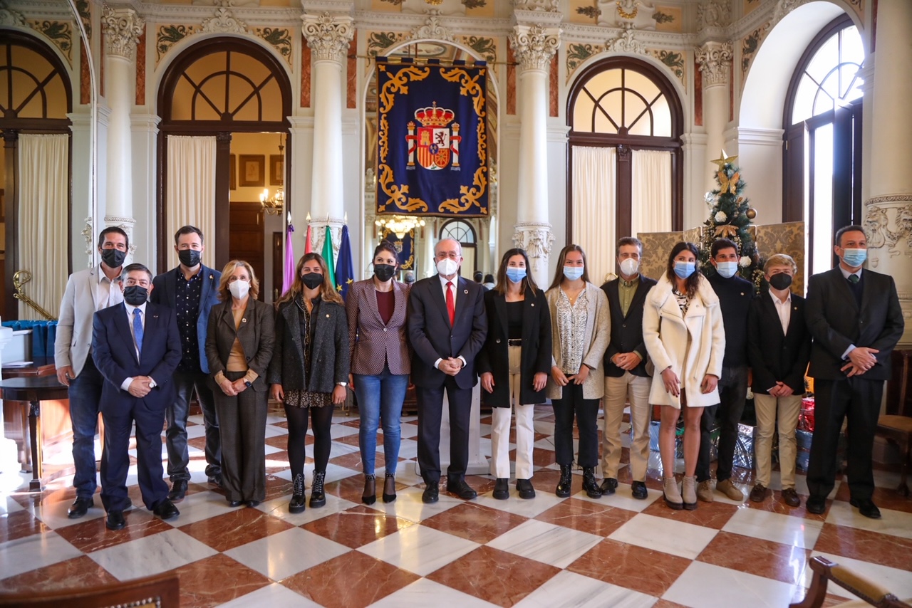 El alcalde de Málaga, Francisco de la Torre, acompañado de la concejala de Deporte, Noelia Losada, ha recibido este mañana a los remeros malagueños que obtuvieron medalla en el Campeonato del Mundo de Remo de Mar, celebrado en Oeiras (Portugal) a quiénes se le ha hecho entrega de una placa. Al acto han asistido los deportistas malagueños junto al delegado de Remo del Real Club Mediterráneo, Juan Carlos Marfil, quien, en representación del Club ha recibido un obsequio institucional por su labor en el fomento del deporte.
