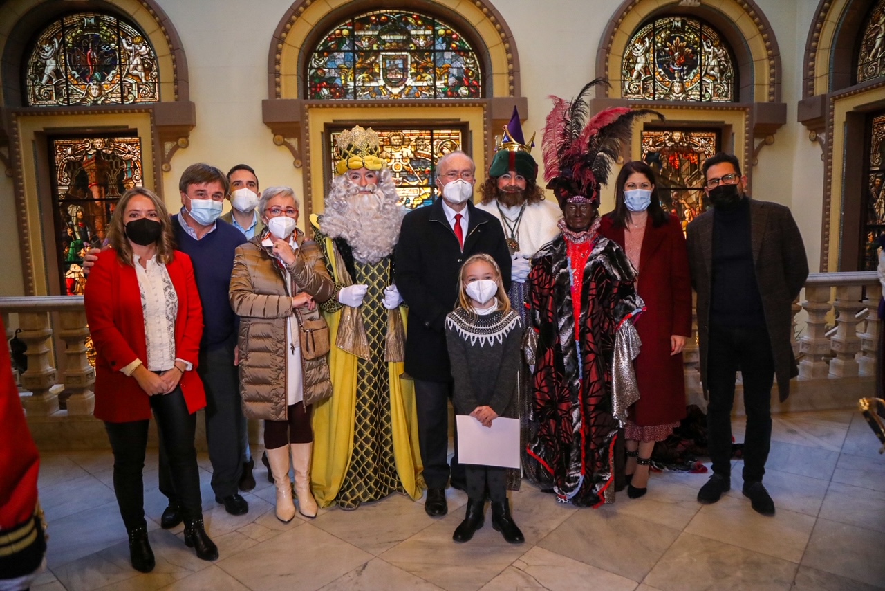 Los Reyes Magos han sido recibidos en la puerta del Consistorio por el alcalde de Málaga, Francisco de la Torre, acompañado por la concejala de Fiestas, Teresa Porras, y demás miembros de la Corporación Municipal. Antes de iniciarse el recorrido, los Reyes Magos han saludado desde el balcón del Ayuntamiento, donde la niña Estrella Delgado Martín, de 8 años, alumna del Colegio Valle Inclán y de la Fundación Musical de Málaga ha leído su carta a los Reyes en representación de todos los niños y niñas de Málaga.