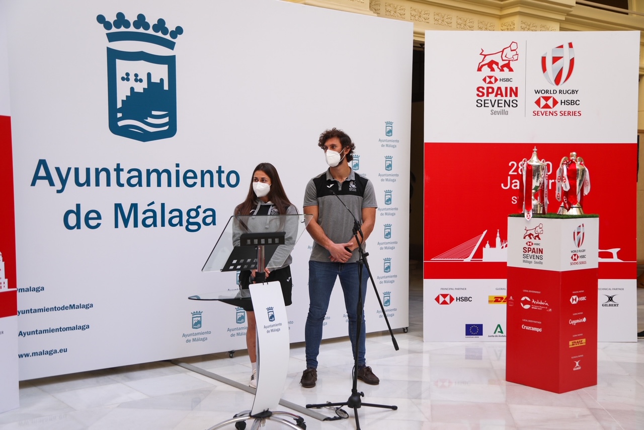 Los capitanes de la selección española de rugby 7 masculina y femenina, Jaime Mata y Anne Fernández de Corres, han acudido este lunes 17 de enero al Ayuntamiento de Málaga para la presentación de las HSBC Spain Sevens Series, el campeonato mundial que se disputará desde este viernes 21 al domingo 23 de enero en el Estadio Ciudad de Málaga y finalizará el siguiente fin de semana, del 28 al 30, en La Cartuja de Sevilla.