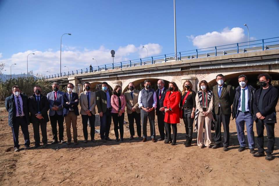 El alcalde de Málaga, Francisco de la Torre, junto al presidente de la Junta de Andalucía, Juanma Moreno, y la consejera de Agricultura, Carmen Crespo, ha asistido a la colocación de la primera piedra y el inicio de las obras de defensa del río Guadalhorce frente a inundaciones.