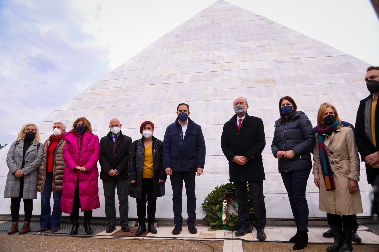 El alcalde de Málaga, Francisco de la Torre, junto a miembros de la Corporación, ha asistido hoy al acto institucional municipal de homenaje a las personas represaliadas durante la Guerra Civil y la dictadura franquista. El acto ha tenido lugar hoy al mediodía en el Panteón de la Memoria Histórica, ubicado en el cementerio de San Rafael. El Panteón de la Memoria Histórica de Málaga, con forma de pirámide, inaugurado en enero de 2014, es fruto del convenio de colaboración firmado entre el Consistorio y la Asociación contra el Silencio y el Olvido y por la Recuperación de la Memoria Histórica de Málaga.