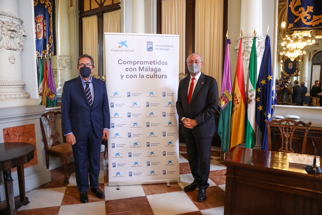 * El alcalde de Málaga, Francisco de la Torre, y el director general de la Fundación ”la Caixa”, Antonio Vila Bertrán, han presentado la renovación del convenio para el desarrollo de actividades culturales en la ciudad.