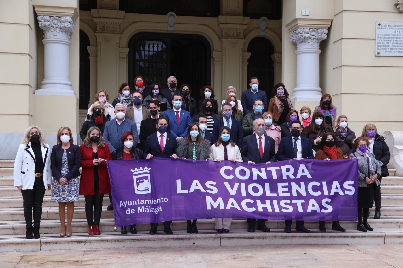 El alcalde de Málaga, Francisco de la Torre, acompañado de miembros de la Corporación Municipal, ha mantenido un minuto de silencio en memoria de la última víctima de la violencia de género confirmada, mujer asesinada en la provincia de Granada. El acto ha tenido lugar hoy jueves, 27 de enero, en el Ayuntamiento de Málaga.