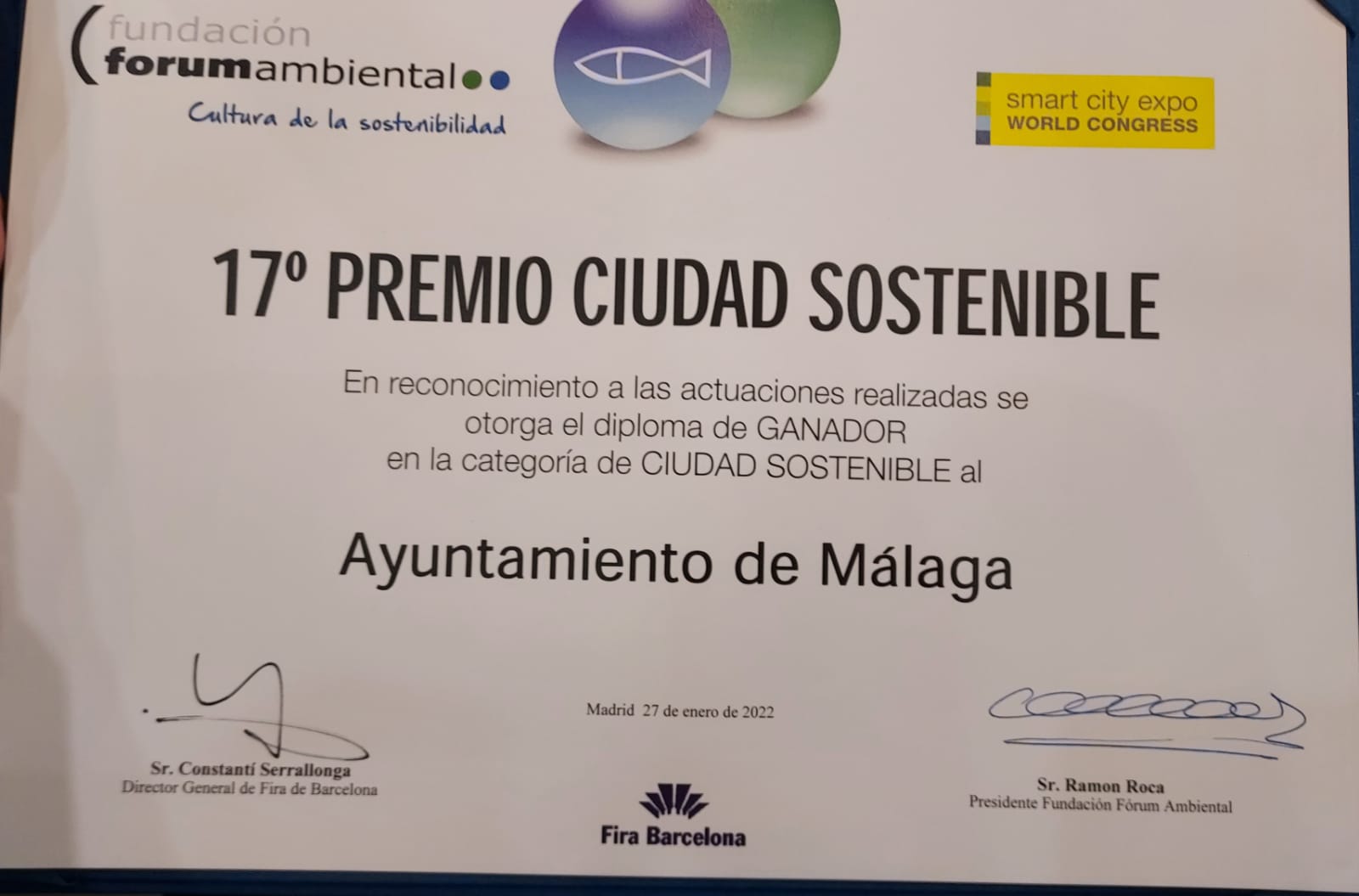 MÁLAGA RECIBE EL PREMIO CIUDAD MÁS SOSTENIBLE OTORGADO POR LA FUNDACIÓN FÓRUM AMBIENTAL
