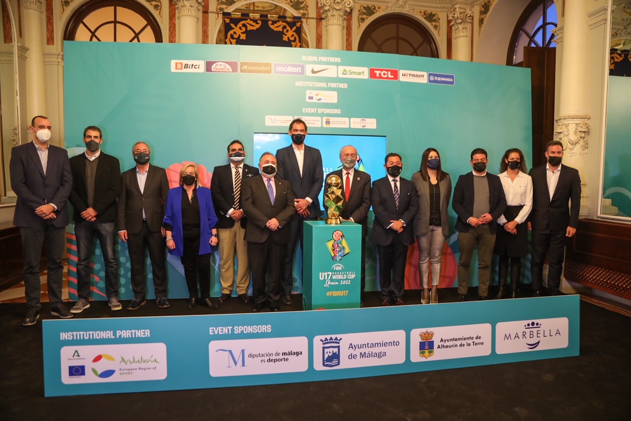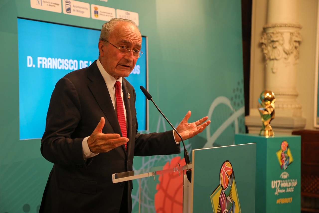 El alcalde de Málaga, Francisco de la Torre, junto a la concejala de Deporte, Noelia Losada, ha participado en el Salón de los Espejos del Ayuntamiento de Málaga a la presentación oficial de la Copa del Mundo de baloncesto FIBA U17 2022 que se disputará en la provincia de Málaga del 2 al 10 de julio. En el acto, que también ha contado con la presencia del presidente de la Federación Española de Baloncesto, Jorge Garbajosa; el secretario general para el Deporte de la Junta de Andalucía, José María Arrabal, y el diputado de Deportes de Diputación Provincial, Cristóbal Ortega, se ha dado conocer por primera vez el logo del campeonato. La Fase Final de la Copa del Mundo FIBA U17 Masculina 2022 se disputará en el Palacio de Deportes José Martín Carpena de la capital malagueña. A su vez, los partidos de clasificación del noveno al decimosexto puesto se jugarán en Alhaurín de la Torre. Las localidades de Marbella y Alhaurín de la Torre ejercerán de sedes durante la Fase de Grupos