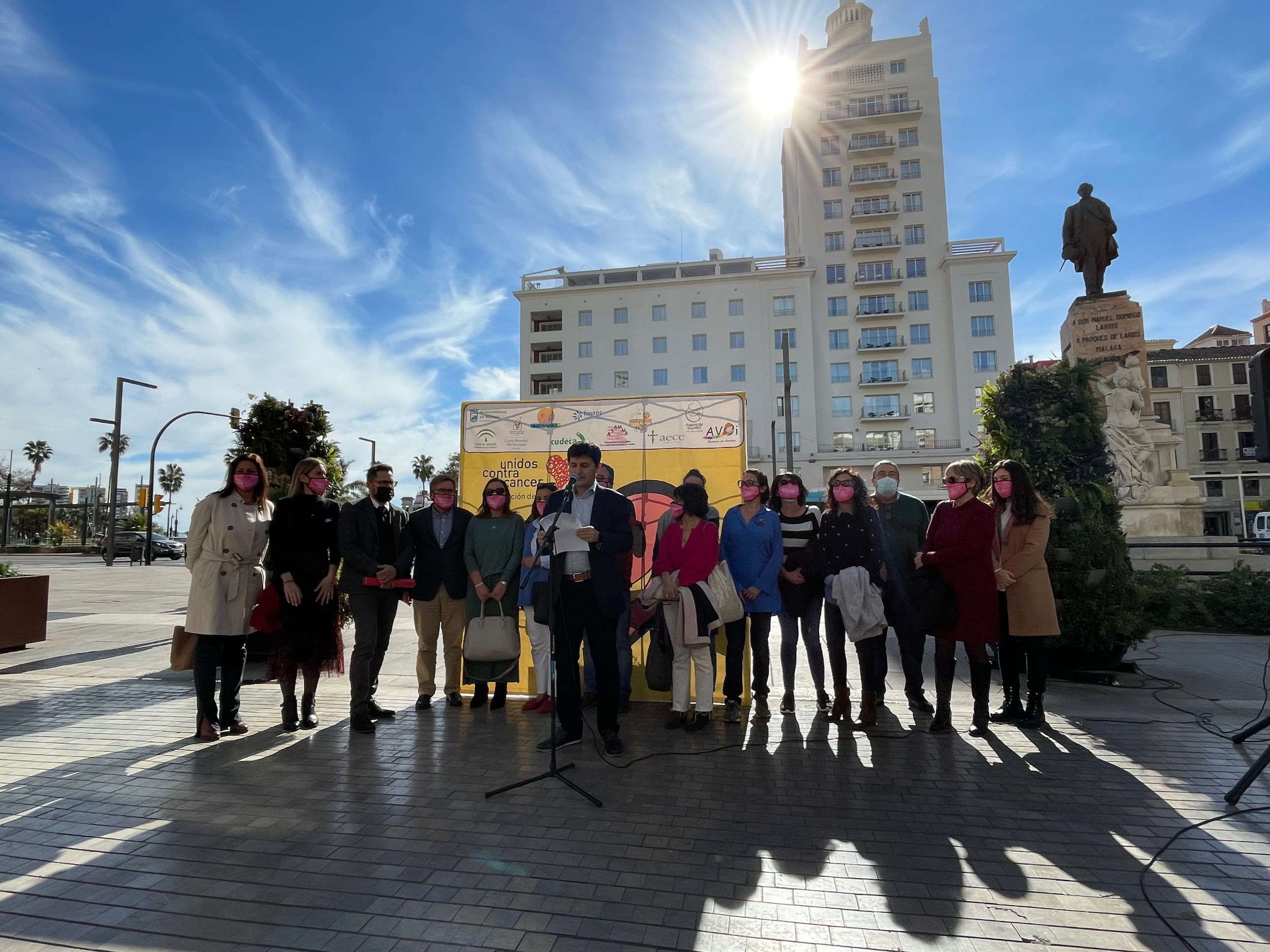 El concejal de Derechos Sociales, Francisco Pomares, ha asistido hoy junto a representantes de la Agrupación de Desarrollo Unidos contra el Cáncer, de la que el Consistorio forma parte, a la lectura del manifiesto con motivo del Día Mundial contra el Cáncer. La Agrupación de Desarrollo, está formada por las siguientes asociaciones: Fundación Olivares, Asociación Española Contra el Cáncer, ASAMMA, Aspanoma, AVOI, Casa Ronald McDonald, Cesare Scariolo, Cudeca, Fmaec, y el Ayuntamiento de Málaga. Se adjunta manifiesto.