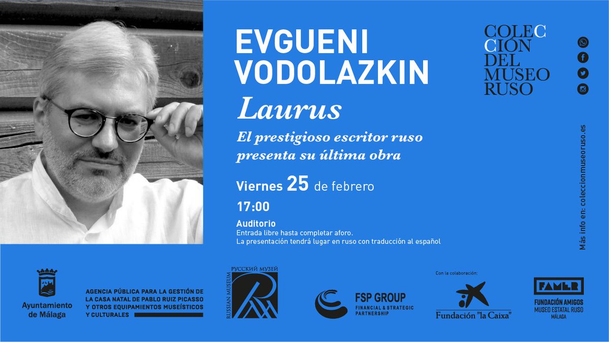 EL ESCRITOR EVGUENI VODOLAZKIN PRESENTARÁ EN LA COLECCIÓN DEL MUSEO RUSO SU ÚLTIMA NOVELA, LAURUS 22/2/2022 Imagen El viernes, 25 de febrero a las 17:00 horas, el autor de Aviador y Brisbane mantendrá un encuentro con el público en el auditorio de este espacio Documentos NOTA INFORMATIVA.pdf 143,28 KB kb Galería de imágenes