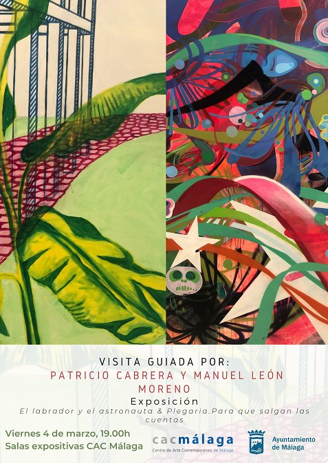 El CAC Málaga organiza con motivo del cierre de las exposiciones “ El labrador y el astronauta ” de Patricio Cabrera y Plegaria. Para que salgan las cuentas de Manuel León, una visita comentada por los artistas sevillanos, el próximo viernes 4 de marzo a las 19h en el CAC Málaga. El aforo es limitado a 25 personas, por lo que se requiere inscripción mediante la plataforma de Evenbrite. Esta actividad es para todo los públicos y gratuita.
