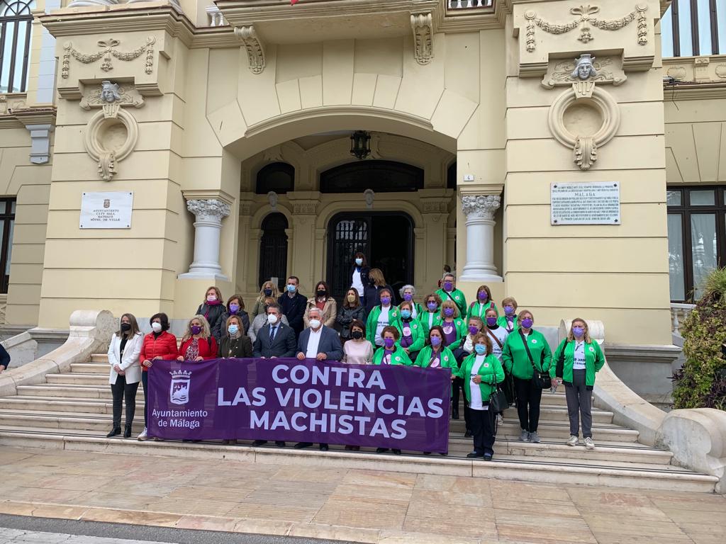 La Corporación Municipal ha mantenido un minuto de silencio en memoria de la última víctima de la violencia de género confirmada, mujer asesinada en Toledo el pasado 3 de marzo. El acto ha tenido lugar en las escaleras exteriores del edificio del Ayuntamiento de la Málaga, hoy martes 8 de marzo, a las 12.00 horas.