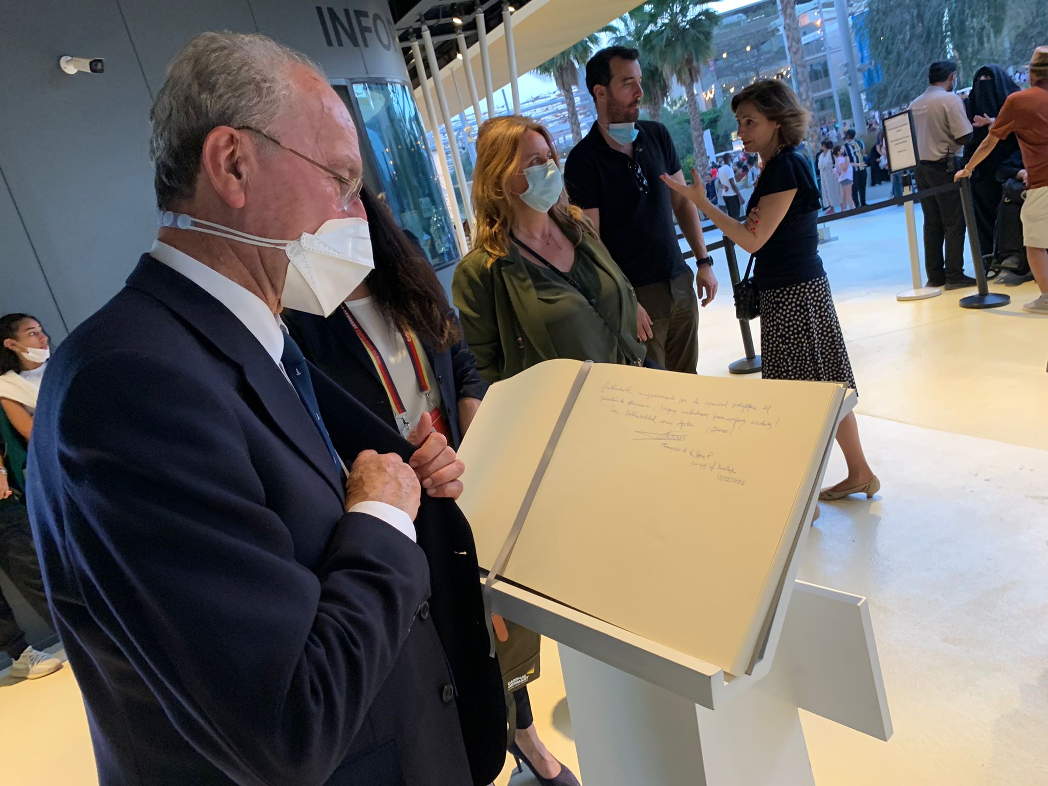 La delegación municipal que se ha desplazado a Expo 2020 Dubái ha tenido hoy una intensa agenda de trabajo en su primera jornada, previa a la presentación de mañana, en el Pabellón de España, de ‘La era urbana: hacia la ciudad sostenible’, exposición internacional que Málaga es candidata a organizar en 2027. En el evento de mañana actuarán la soprano Berna Perles; el barítono Carlos Álvarez; y el pianista Rubén Fernández Aguirre. El alcalde ha mantenido esta mañana una reunión de coordinación con el equipo del pabellón español, seguida de un almuerzo de trabajo en el pabellón de Marruecos. Posteriormente, ha visitado el centro de control de Expo Dubái 2020 y los pabellones de Nueva Zelanda y Alemania. En este último, De la Torre ha firmado en el libro de honor.