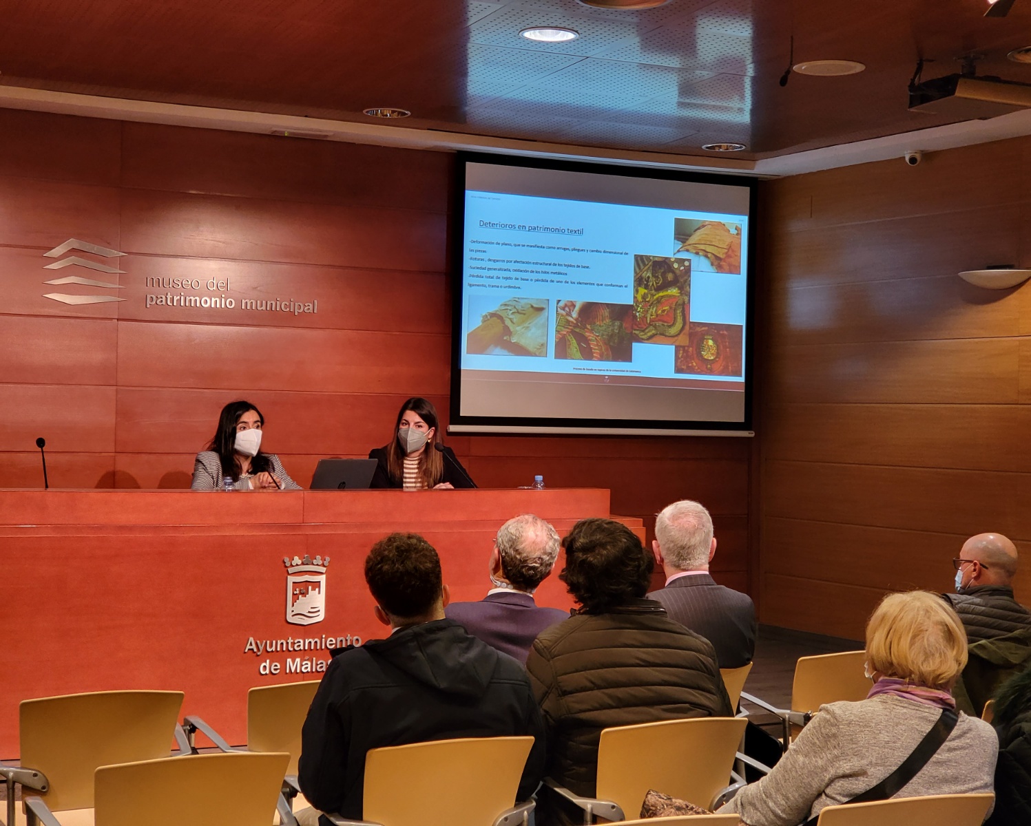 El alcalde de Málaga, Francisco de la Torre, ha asistido esta tarde en el Mupam a la sesión inaugural del Primer Seminario sobre Restauración y Conservación del Patrimonio Textil de las Cofradías, organizado por la Real Fábrica de Tapices.