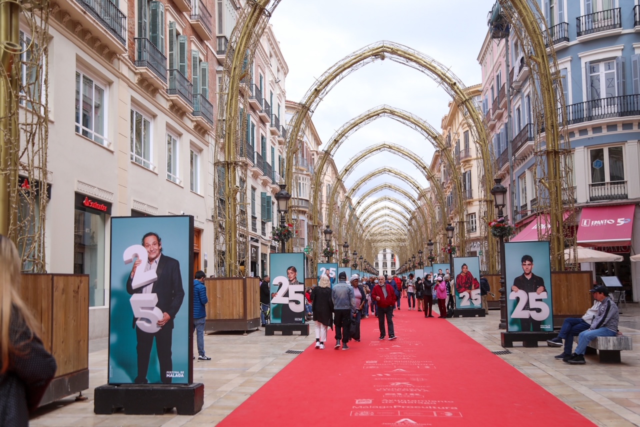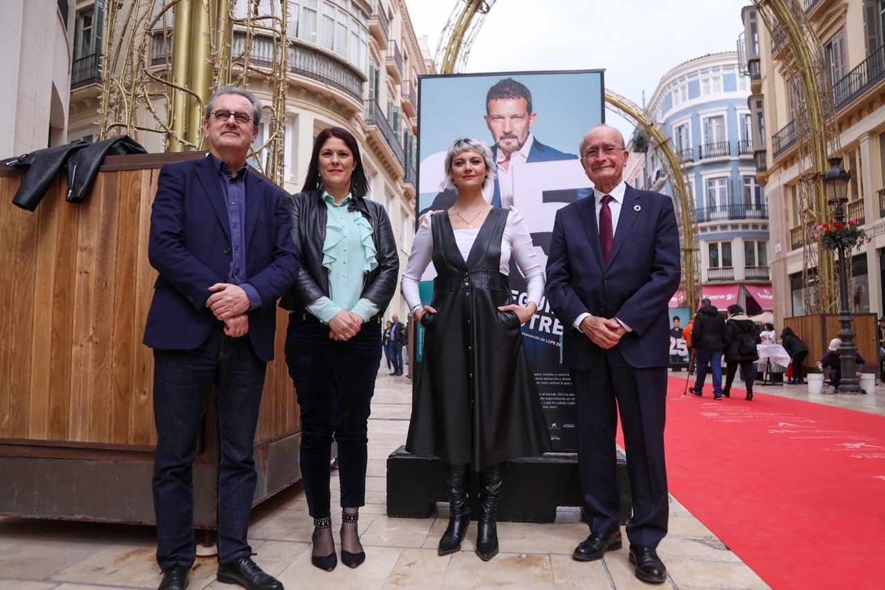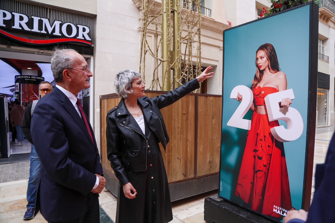 El alcalde de Málaga, Francisco de la Torre, junto a la concejala de Cultura, Noelia Losada; el director del Festival de Málaga, Juan Antonio Vigar; y la fotógrafa Lupe de la Vallina, ha inaugurado este mediodía la exposición de calle Larios con motivo del 25 Festival de Málaga, titulada ‘ 25 y seguimos de estreno. Una exposición de Lupe de la Vallina’