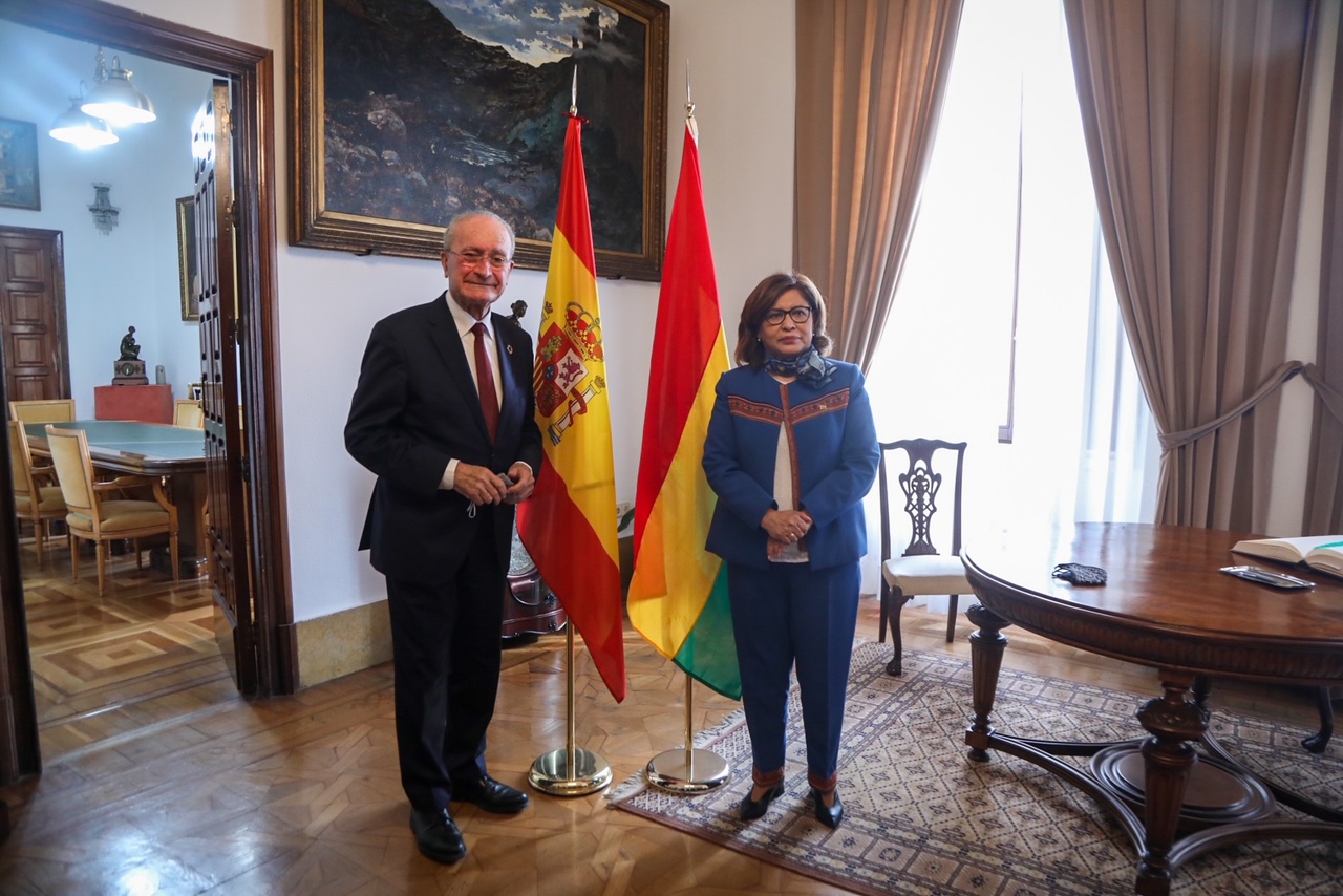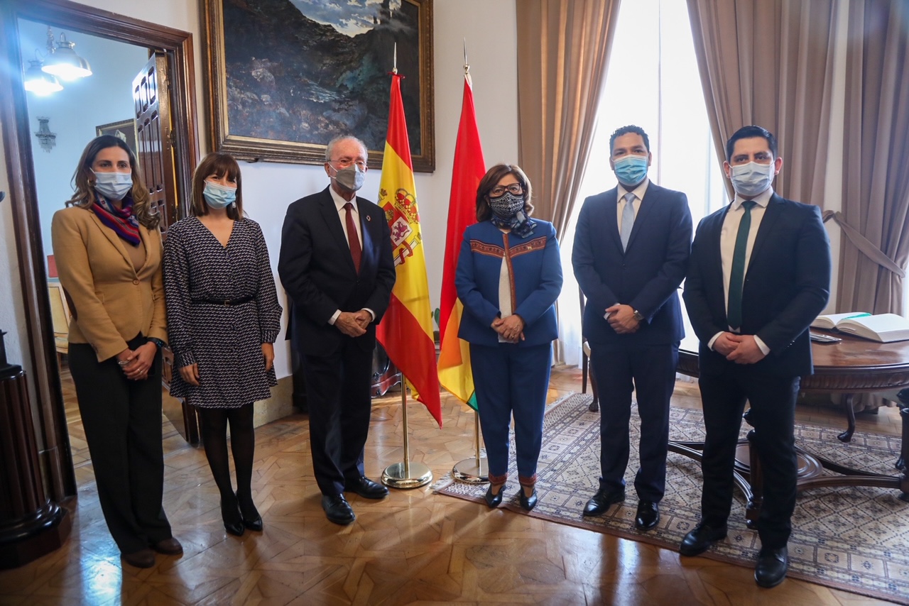 El alcalde de Málaga, Francisco de la Torre, ha mantenido esta mañana un encuentro con la embajadora de Bolivia en España, Nardi Suxo Iturry. Al encuentro también han asistido el ministro consejero y el segundo secretario de la embajada de Bolivia en España, Víctor Rafael Arancibia y Walter Yánez, respectivamente, la vicecónsul de Bolivia en Sevilla, Alenka Rojas, y la concejala delegada de Participación Ciudadana, Migración, Acción Exterior, Cooperación al Desarrollo, Transparencia y Buen Gobierno, Ruth Sarabia.