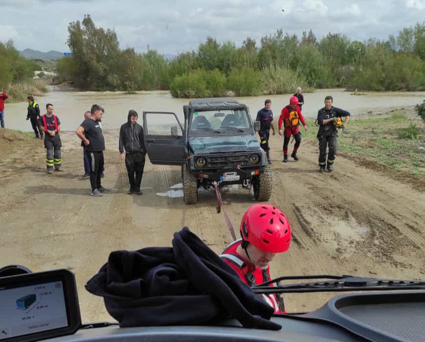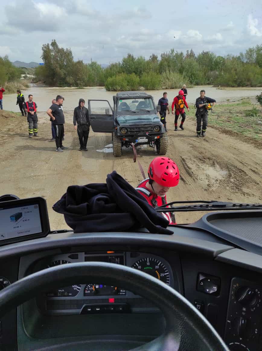 El Real Cuerpo de Bomberos de Málaga ha intervenido esta mañana en el rescate de una persona que se encontraba en la parte superior de un vehículo en el cauce del río Guadalhorce, a la altura a del tramo que discurre por Zapata. Al servicio han acudido dos dotaciones de bomberos procedentes de los parques de Churriana y Martiricos con efectivos equipados para el rescate en lámina de agua y dos vehículos de bomberos que han contribuido al rescate del conductor y al traslado del vehículo fuera del cauce del río.