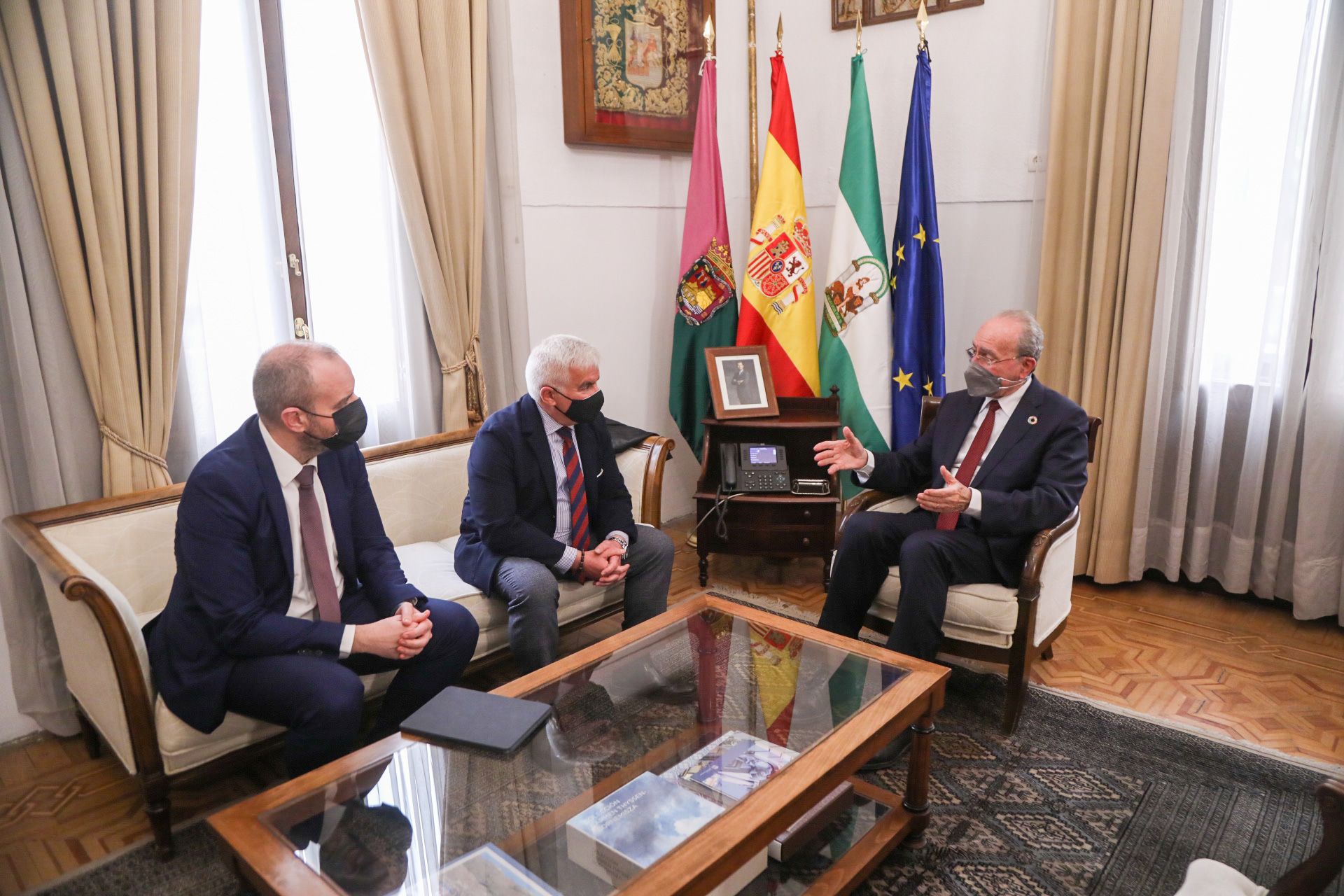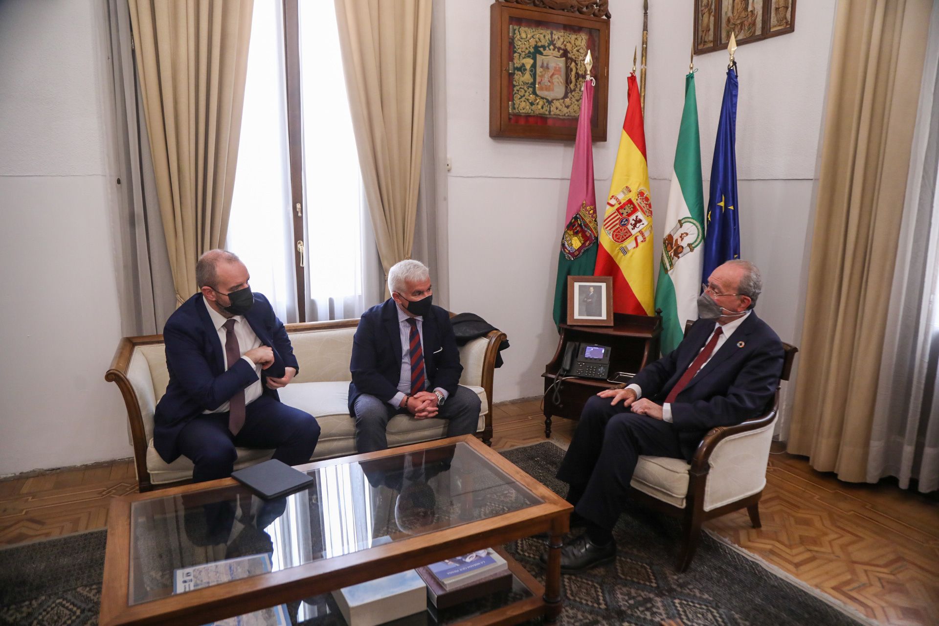 El alcalde de Málaga, Francisco de la Torre, ha mantenido este mediodía un encuentro con el nuevo presidente del Clúster Smart City, Vito Espíscopo, y el presidente del Clúster Andalucía Smart City, Daniel González. Este encuentro ha sido en el Ayuntamiento