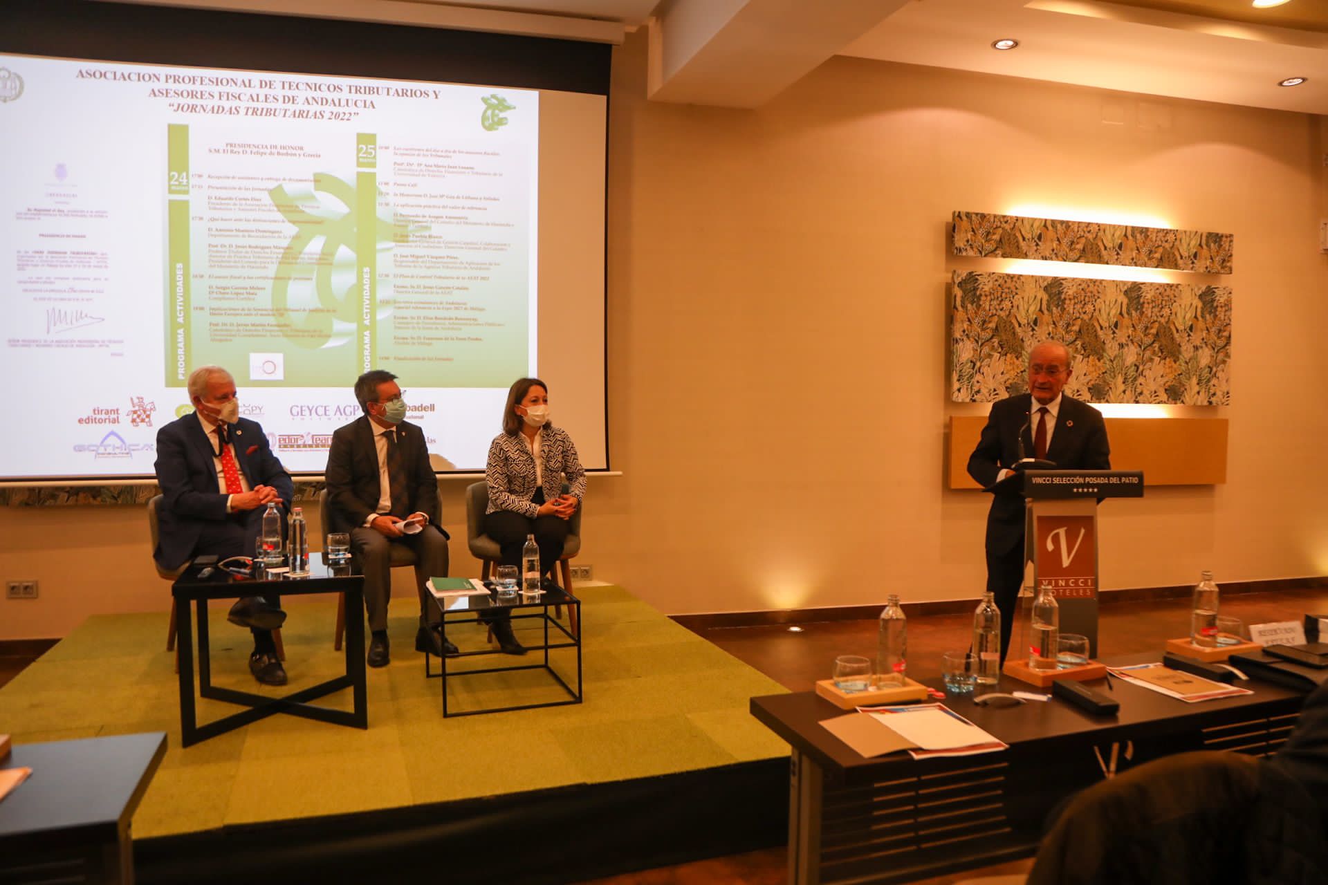 El alcalde de Málaga, Francisco de la Torre, ha participado con la exposición ‘Los retos económicos de Andalucía en referencia a la Expo 2027’ en la clausura de las XXXV Jornadas Tributarias 2022