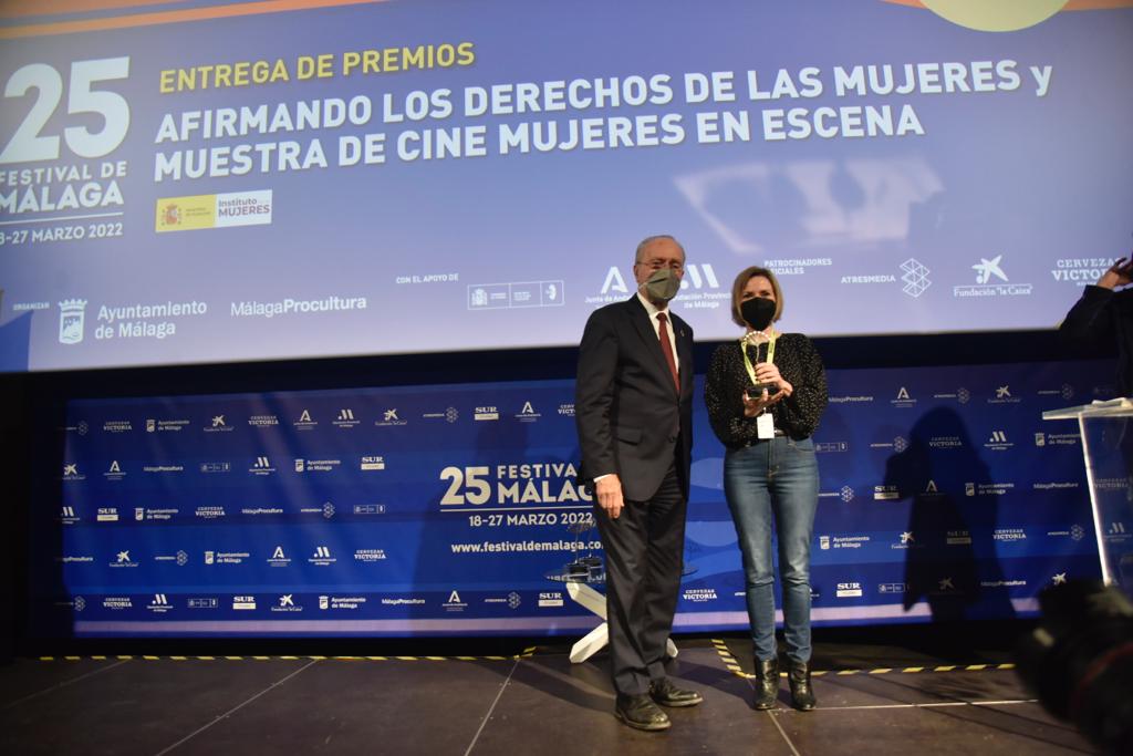 El alcalde de Málaga, Francisco de la Torre, junto a los concejales de Derechos Sociales e Igualdad y Cultura, Francisco Pomares y Noelia Losada, respectivamente, a más miembros de la Corporación municipal y a la directora del Instituto de las Mujeres del Ministerio de Igualdad, Antonia Morillas, ha participado hoy en el cine Albéniz en la entrega de premios de la sección ‘Afirmando los Derechos de las Mujeres’, en el marco de la 25 edición del Festival de Málaga, Cine Español.