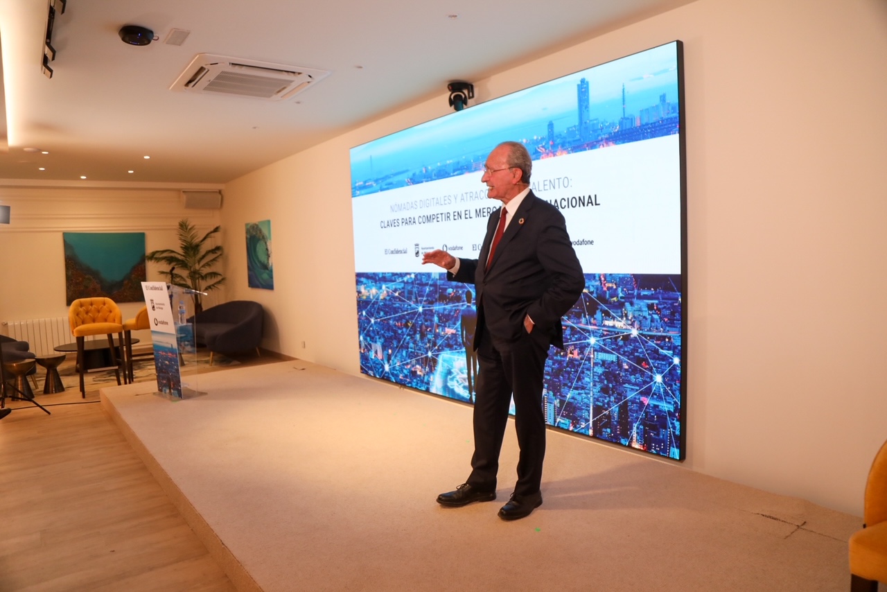 El alcalde de Málaga, Francisco de la Torre, ha participado, junto al director de El Confidencial, Nacho Cardero, en el Foro el Confidencial ` Nómadas digitales y atracción del talento: claves para competir en el mercado internacional’, organizado por El Confidencial y Vodafone. Un evento en el que se ha debatido sobre las posibilidades y expectativas de la emergente industria tecnológica española. La mese de debate ha contado con la presencia del director del PTA, Felipe Romera, el director de selección de Adecco Group Andalucía, Iván Salguero, el presidente de la Agrupación Nómadas Digitales Corporativos José Almansa y el managing director de Accenture Technology, Antonio de la Pietra. Al evento también ha asistido la concejala de Turismo, Promoción de la Ciudad y Capatación de Inversiones, Rosa Sánchez.