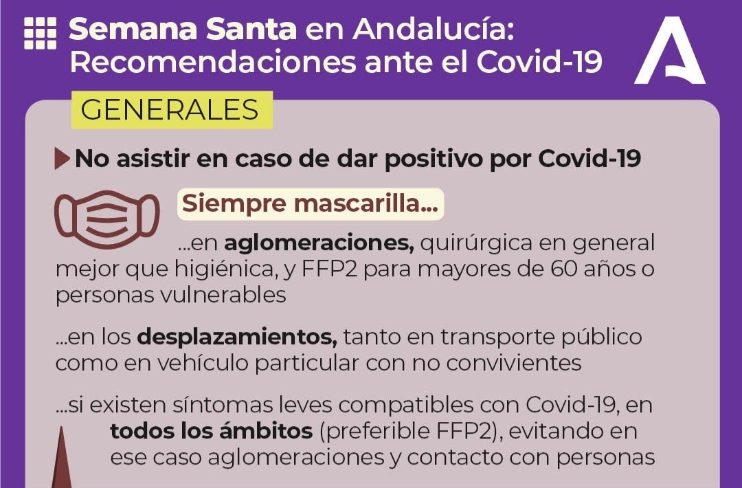 Salud recomienda mantener la mascarilla en los desplazamientos durante la Semana Santa NOTA INFORMATIVA