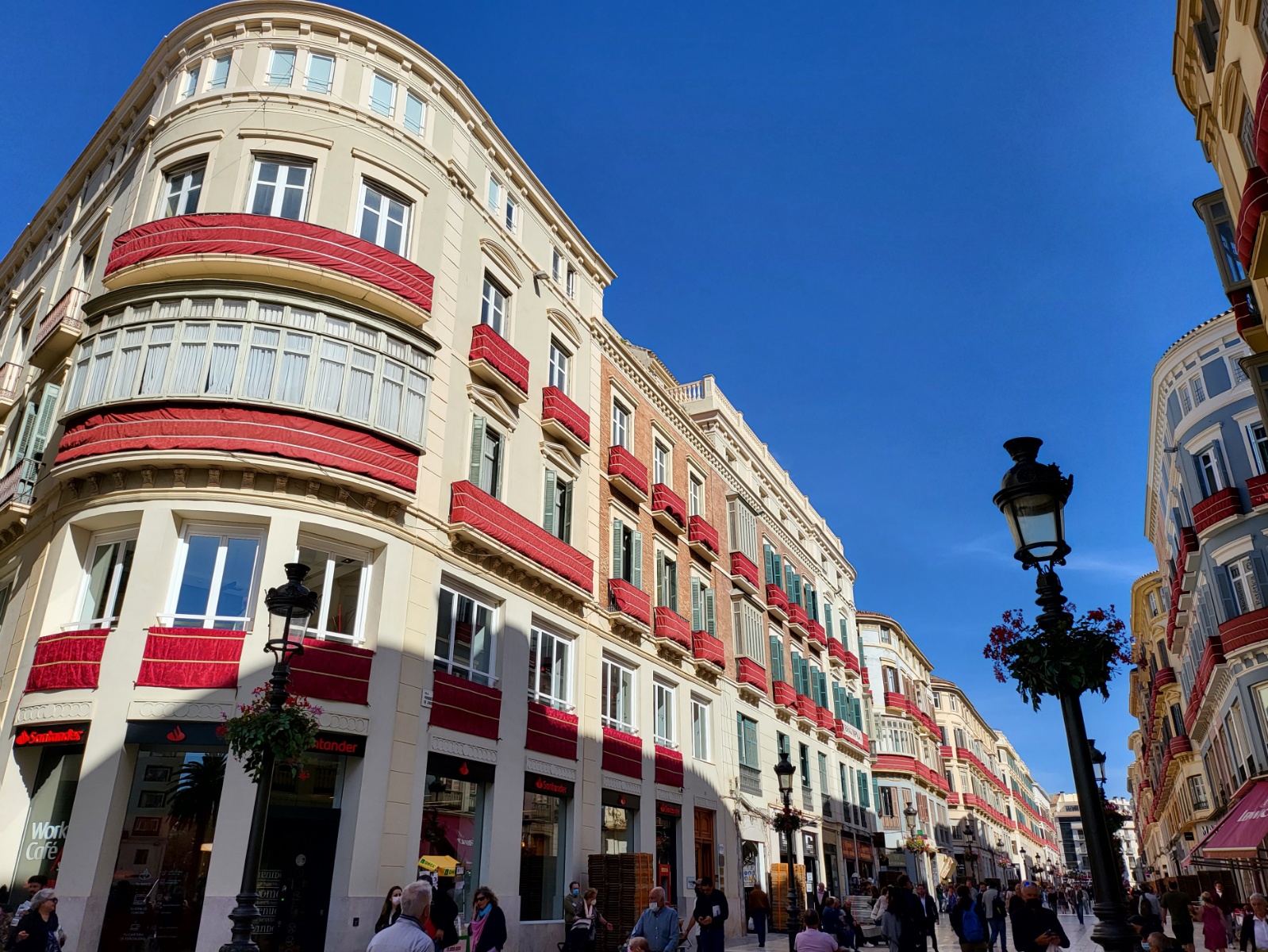 Teresa Porras ha señalado que este año se han incrementado el número de engalanamientos con relación a 2019. Hay balcones engalanados en las plazas de la Constitución y del Obispo y en las calles Larios, Granada, Torregorda, Martínez, Atarazanas y Molina Lario.