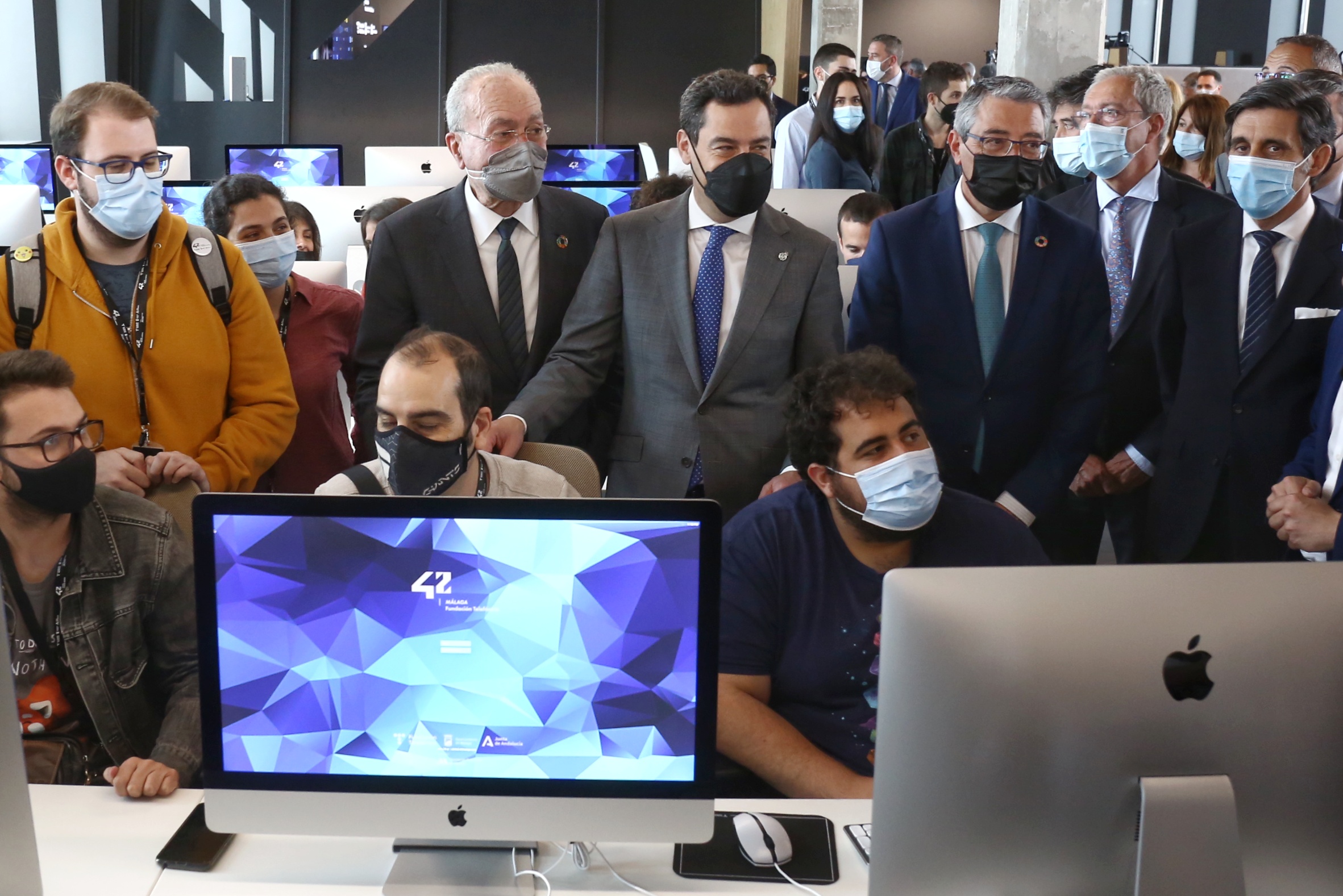 Al acto de inauguración han asistido el presidente de Telefónica, José María Álvarez-Pallete; el alcalde Málaga, Francisco de la Torre; el presidente de la Junta de Andalucía, Juanma Moreno; el presidente de la Diputación Provincial, Francisco Salado y ha contado además con la intervención en remoto de la CEO de 42, Sophie Viger.
