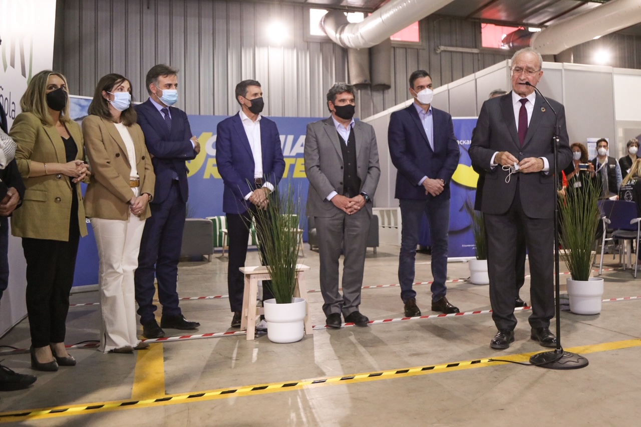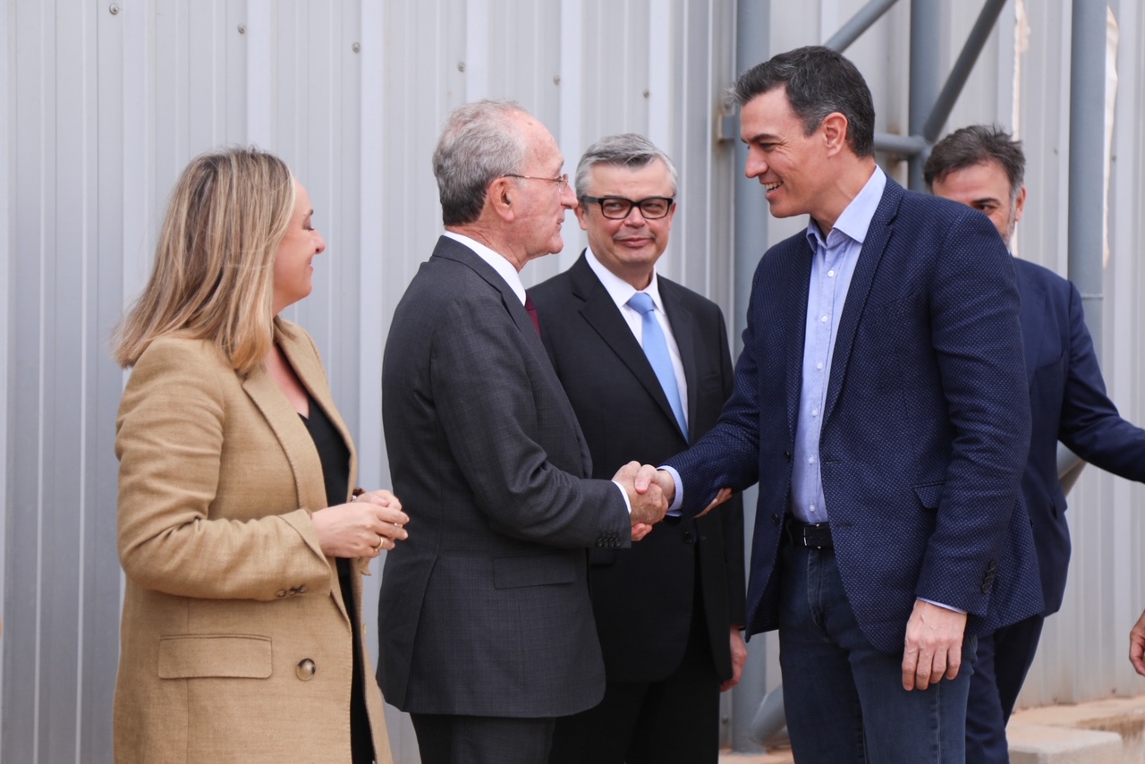 El alcalde de Málaga, Francisco de la Torre, ha recibido al presidente del Gobierno, Pedro Sánchez, en el centro ubicado en el Palacio de Ferias y Congresos de Málaga