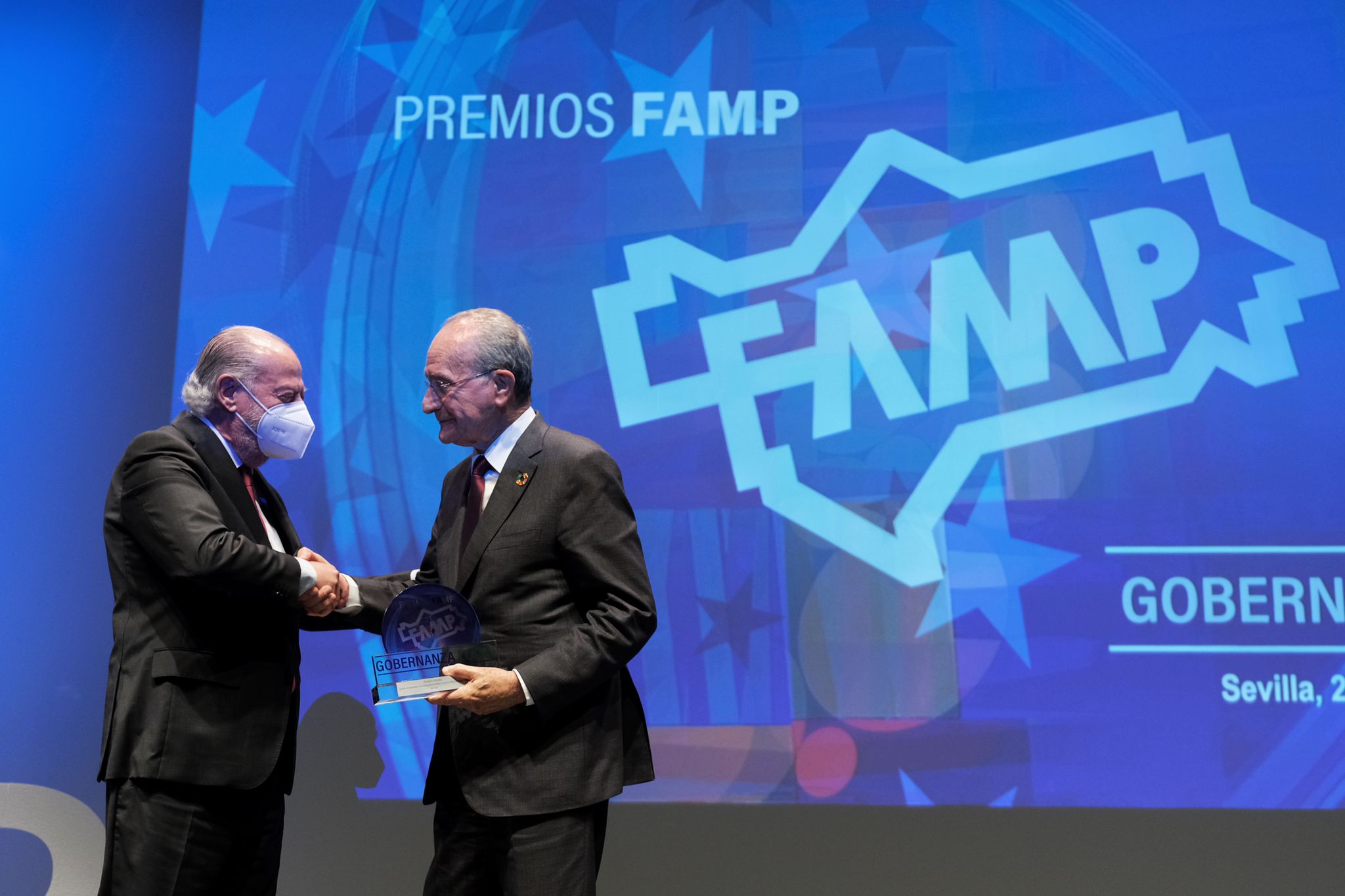 PREMIO OTORGADO POR LA FAMP AL ALCALDE DE MÁLAGA EN LA CATEGORÍA AL AL COMPROMISO CON EL MUNICIPALISMO ANDALUZ Y EL SERVICIO PÚBLICO DE CARÁCTER LOCAL