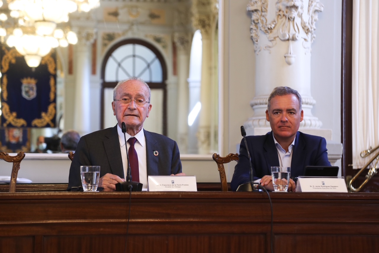 El alcalde de Málaga, Francisco de la Torre, la Secretaria de Estado de Digitalización e Inteligencia Artificial, Carme Artigas, y el ex Director general de Google, Fundador de ISDI y ahora Presidente del grupo educativo DIGITALENT (compuesto por las escuelas de negocio y tecnología ISDI, ISDI Coders, GMQTech, IEBS, ISDE y ESERP), Javier Rodríguez Zapatero, han comparecido hoy en el Salón de los Espejos del Ayuntamiento de Málaga para informar acerca de la creación del Centro de Aceleración Digital de Málaga.