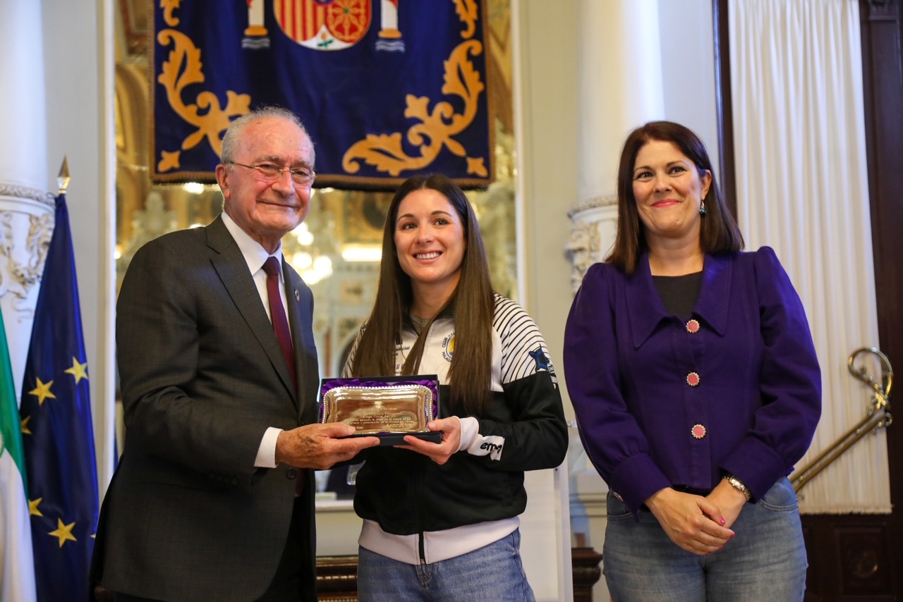 El alcalde de Málaga, Francisco de la Torre, junto a la concejala de Deporte, Noelia Losada, y a más miembros de la Corporación municipal, ha recibido esta tarde a las campeonas de XLIII edición de la Copa de la Reina, el equipo Club Balonmano Femenino Málaga Costa del Sol. Durante el acto celebrado en el Ayuntamiento de Málaga, el alcalde ha hecho entrega de un presente institucional al equipo.