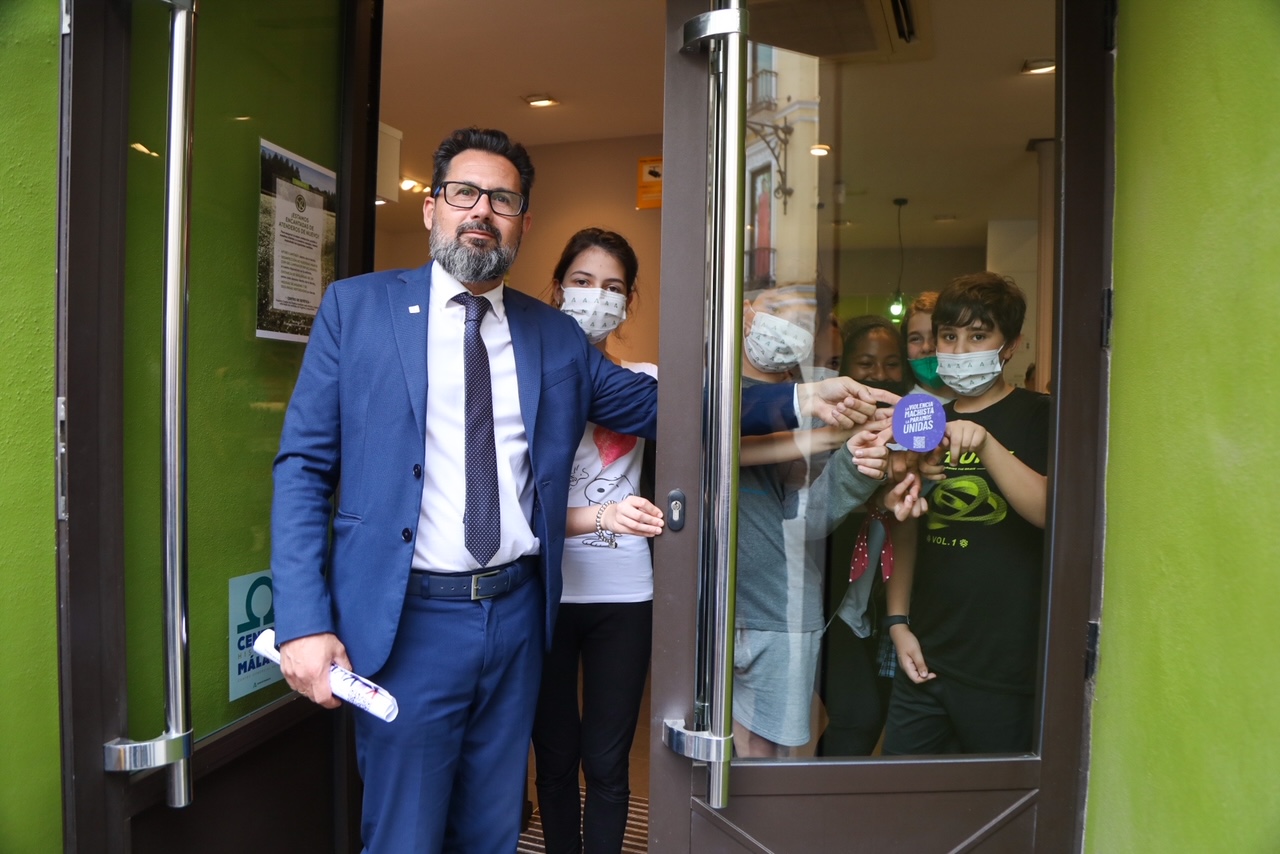 En el acto también han participado la asesora de programas del Instituto Andaluz de la Mujer de la Junta de Andalucía, Encarnación Santiago, la presidenta de la asociación del Centro Histórico de Málaga, Juanibel Vera, así como alumnado y profesorado implicados en esta campaña del IES Vicente Espinel, del CEIP Prácticas nº 1 y del CEIP Nuestra Señora de Gracias.