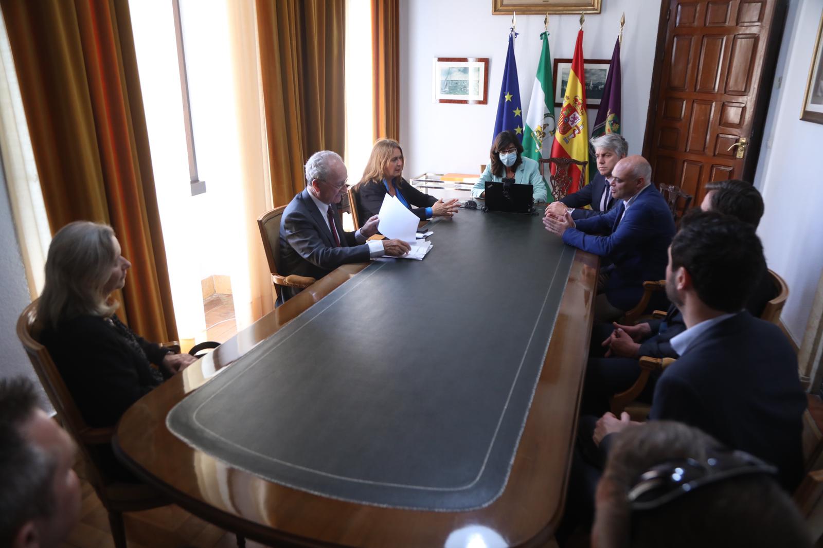 El alcalde de Málaga, Francisco de la Torre, junto a la concejala de Promoción de la Ciudad y Captación de Inversiones, Rosa Sánchez, ha recibido esta mañana en el Ayuntamiento a una delegación de Suecia, compuesta por representantes de la región de Våsterbotten, de la Universidad de Umeå y del proyecto Vinnova. Esta acción, organizada por la Oficina del Inversor del Ayuntamiento de Málaga, está apoyada por la embajada de Suecia en Madrid y cuenta con presencia de representantes de la Agencia de Innovación y Desarrollo de Andalucía (IDEA) y de ICEX.