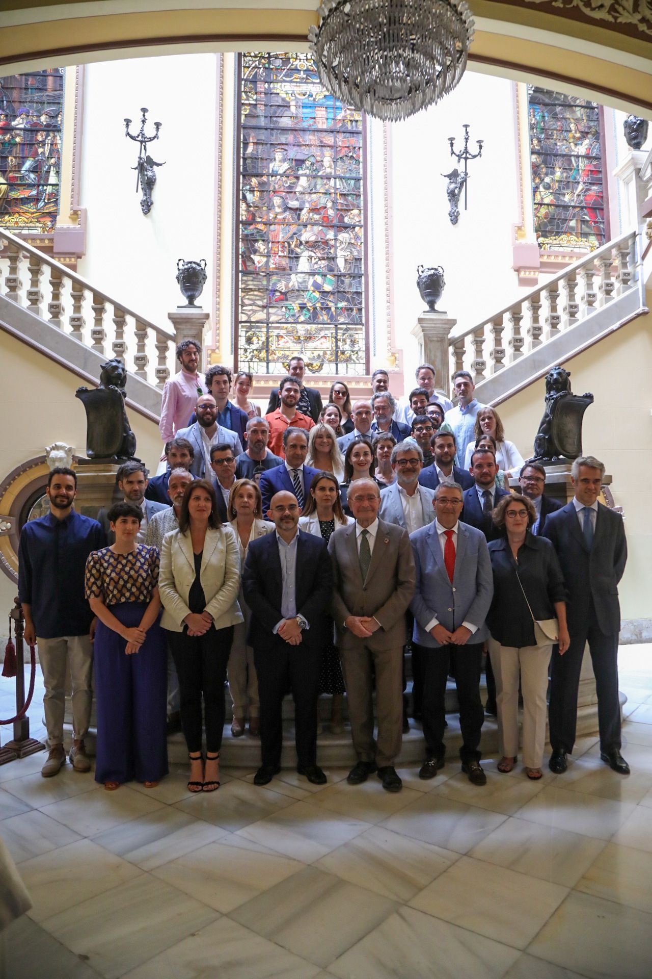 El alcalde de Málaga, Francisco de la Torre, acompañado por la concejala de Innovación y Digitalización Urbana, Susana Carillo, junto al presidente ejecutivo de Prisa Media, Carlos Núñez, la delegada de la Junta de Andalucía en Málaga, Carmen Casero, y el presidente de la Diputación, Francisco Salado, ha asistido a la recepción desarrollada en el Ayuntamiento, previa a la gala de los Premios Ondas Globales del Pódcast que se celebra esta tarde en el Teatro del Soho Caixabank. En el acto también han estado presentes la directora general de Audio de Prisa Media, María Jesús Espinosa de los Monteros, el director de Ser Málaga, Jose Manuel Atencia, así como los galardonados en estos premios.