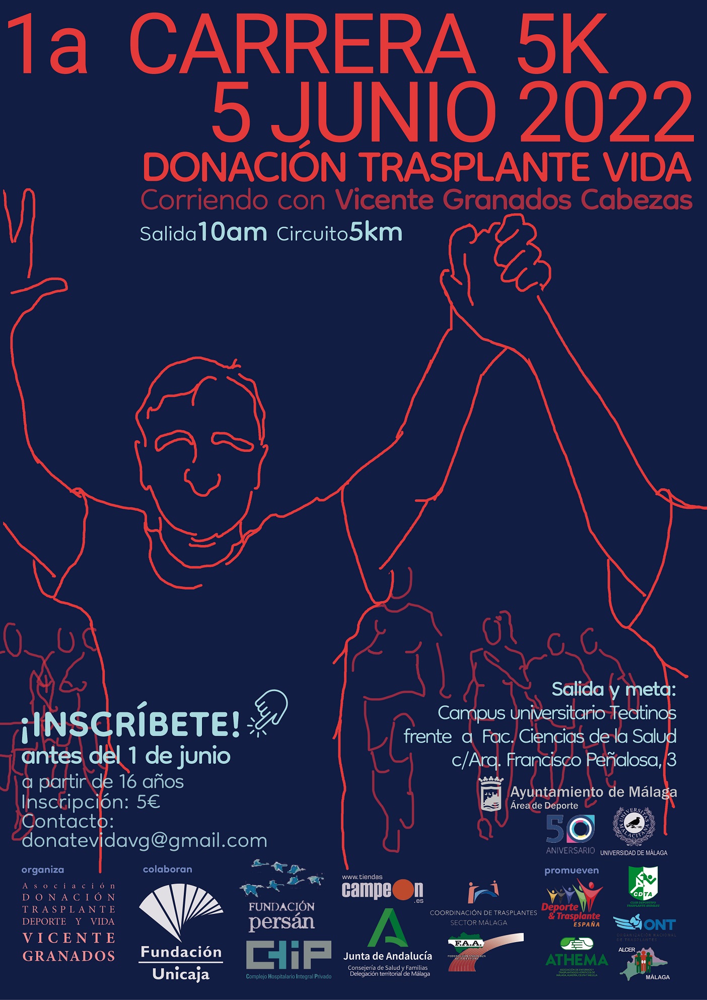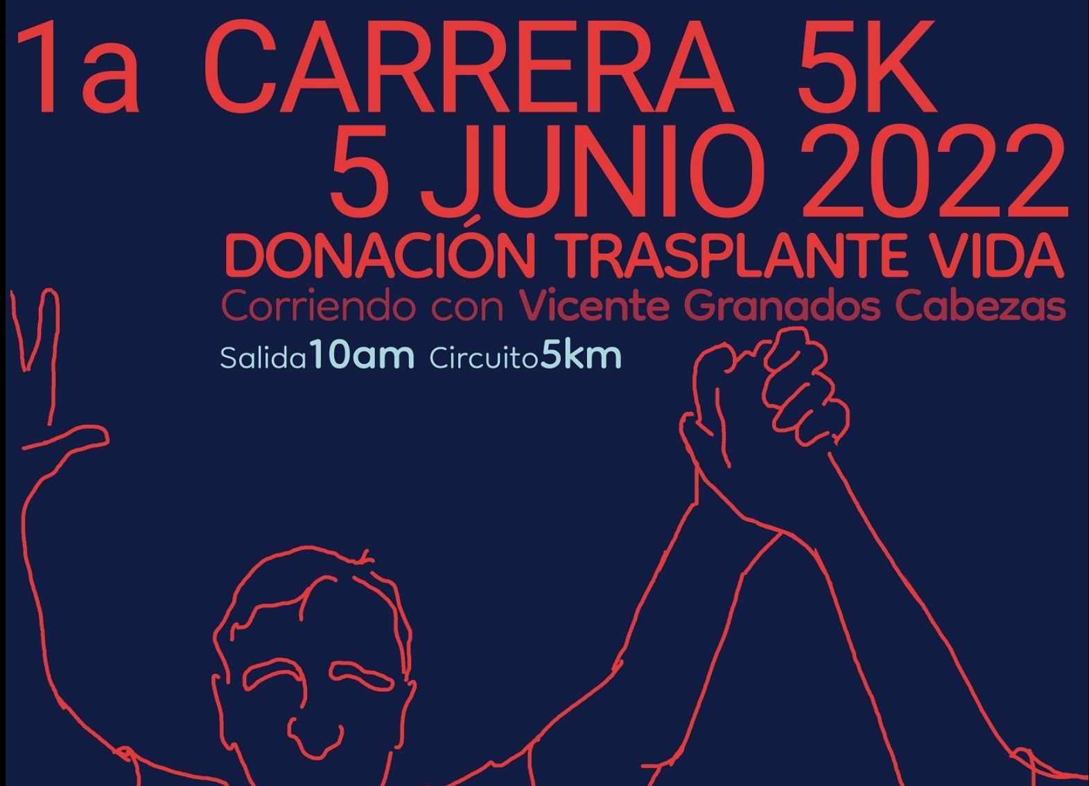 EL DOMINGO 5 DE JUNIO SE CELEBRA LA CARRERA POR LA DONACIÓN, EL TRASPLANTE Y LA VIDA ‘MEMORIAL VICENTE GRANADOS’ 29/5/2022 Imagen Las inscripciones de esta carrera de 5 kilómetros están abiertas hasta el 2 de junio Documentos NOTA INFORMATIVA.pdf 269,01 KB kb Galería de imágenes