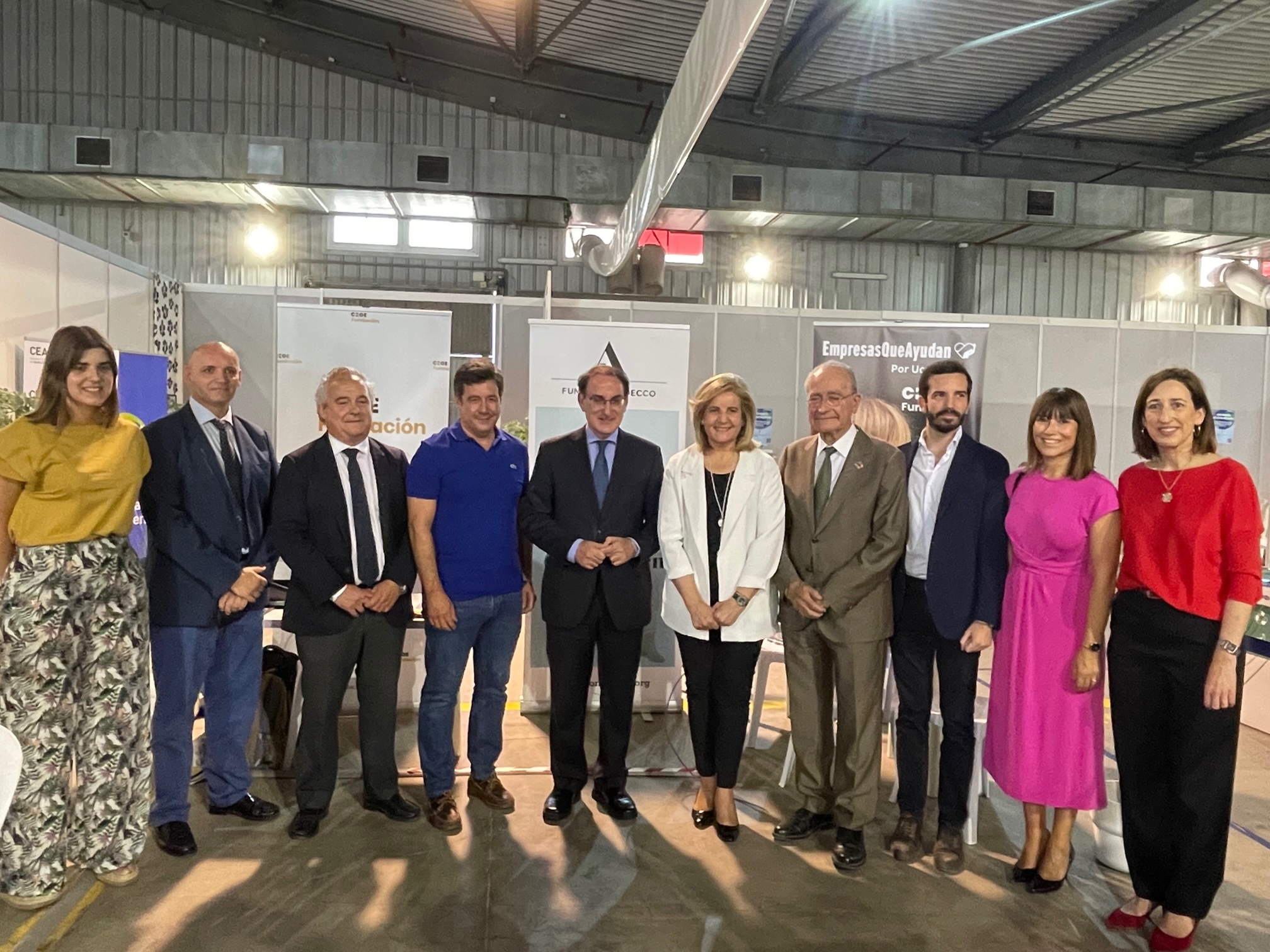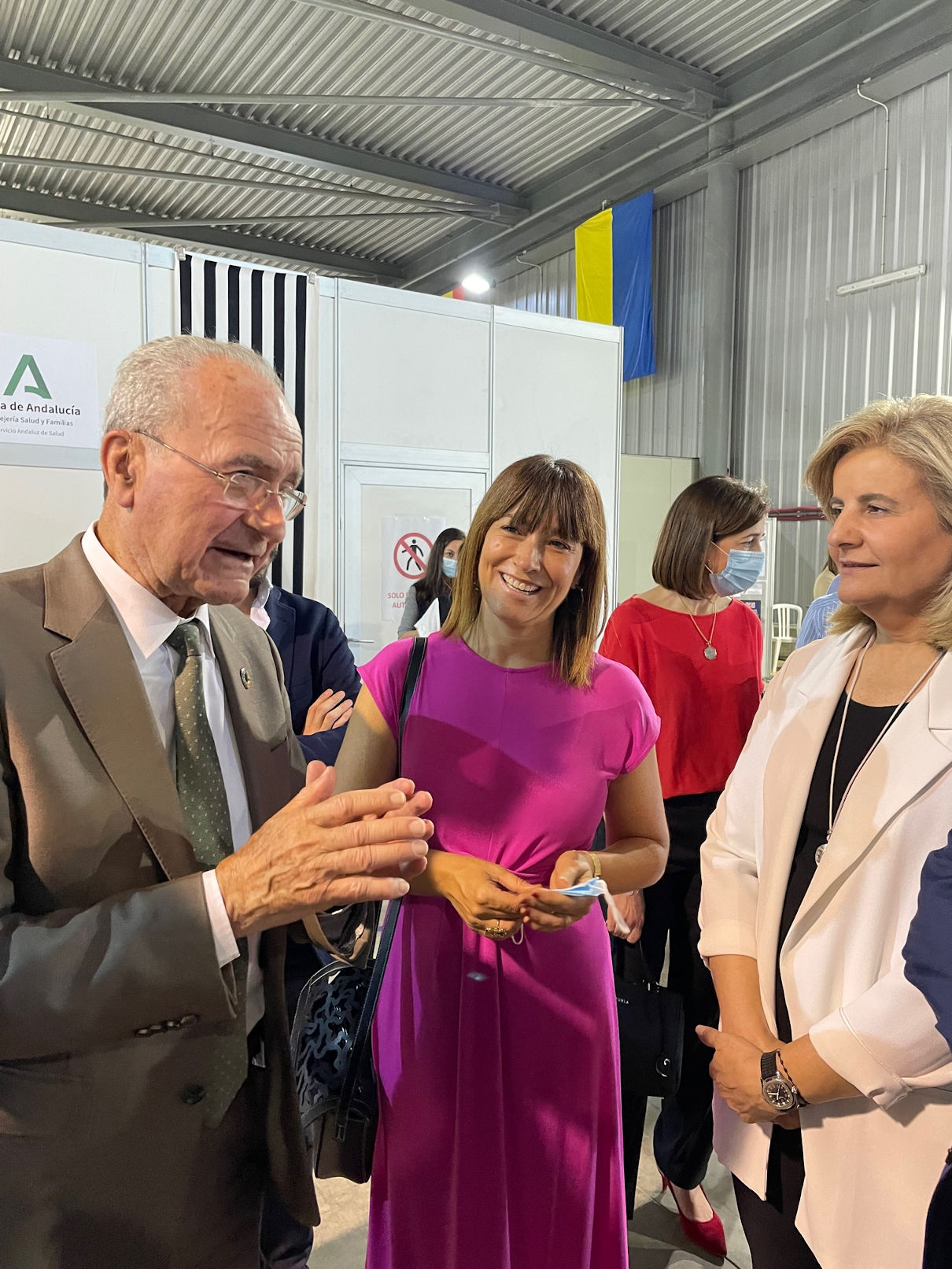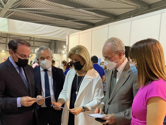 El alcalde de Málaga, Francisco de la Torre, junto a la concejala de Acción Exterior, Migración y Cooperación al Desarrollo, Ruth Sarabia; la presidenta de la Fundación CEOE, Fátima Báñez; y el presidente de la Confederación de Empresarios de Andalucía, Javier González de Lara; ha visitado el Centro de Recepción, Atención y Derivación (CREADE) de refugiados ucranianos, situado en el Palacio de Ferias.