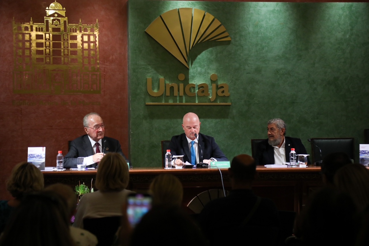 El alcalde de Málaga, Francisco de la Torre, ha participado esta tarde en la presentación del libro ‘El salto de la encantada’, junto al responsable de Publicaciones y Premios de Fundación Unicaja, Francisco Cañadas, y el autor del libro, Enrique García Lucena.