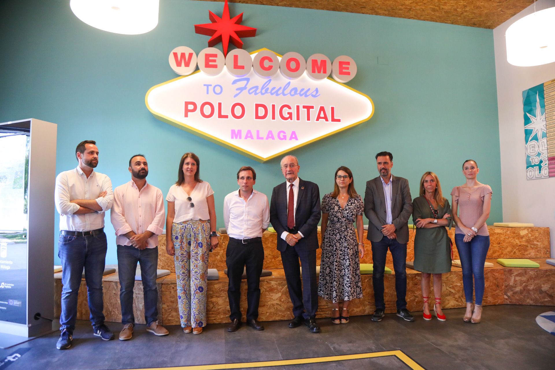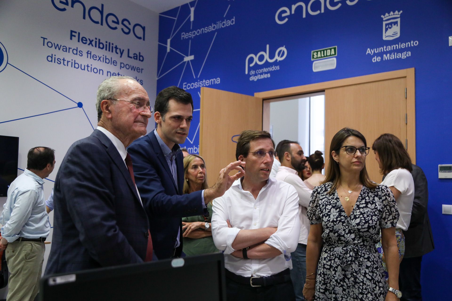 El alcalde de Málaga, Francisco de la Torre, acompañado por la concejala de Innovación y Digitalización Urbana, Susana Carillo, junto a más miembros de la Corporación Municipal, y a la delegada del Gobierno de la Junta de Andalucía en Málaga, Carmen Casero, ha asistido a la visita institucional realizada por el alcalde de Madrid, José Luis Martínez Almeida, al Polo Nacional de Contenidos Digitales, en Tabacalera, en el marco del protocolo general de actuación para el impulso de la transformación digital suscrito entre ambos Consistorios en materia de innovación.