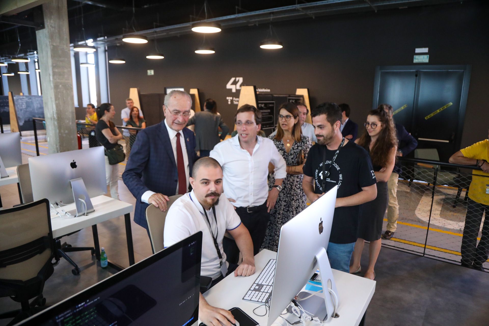 También han recorrido las instalaciones de 42 Málaga, acompañados por el responsable de este Campus -iniciativa de Fundación Telefónica en colaboración con el Ayuntamiento de Málaga y la Junta de Andalucía-, Luis González, y de Rafael Fernández de Alarcón, director de Marca, Patrocinios y Medios en Telefónica España.