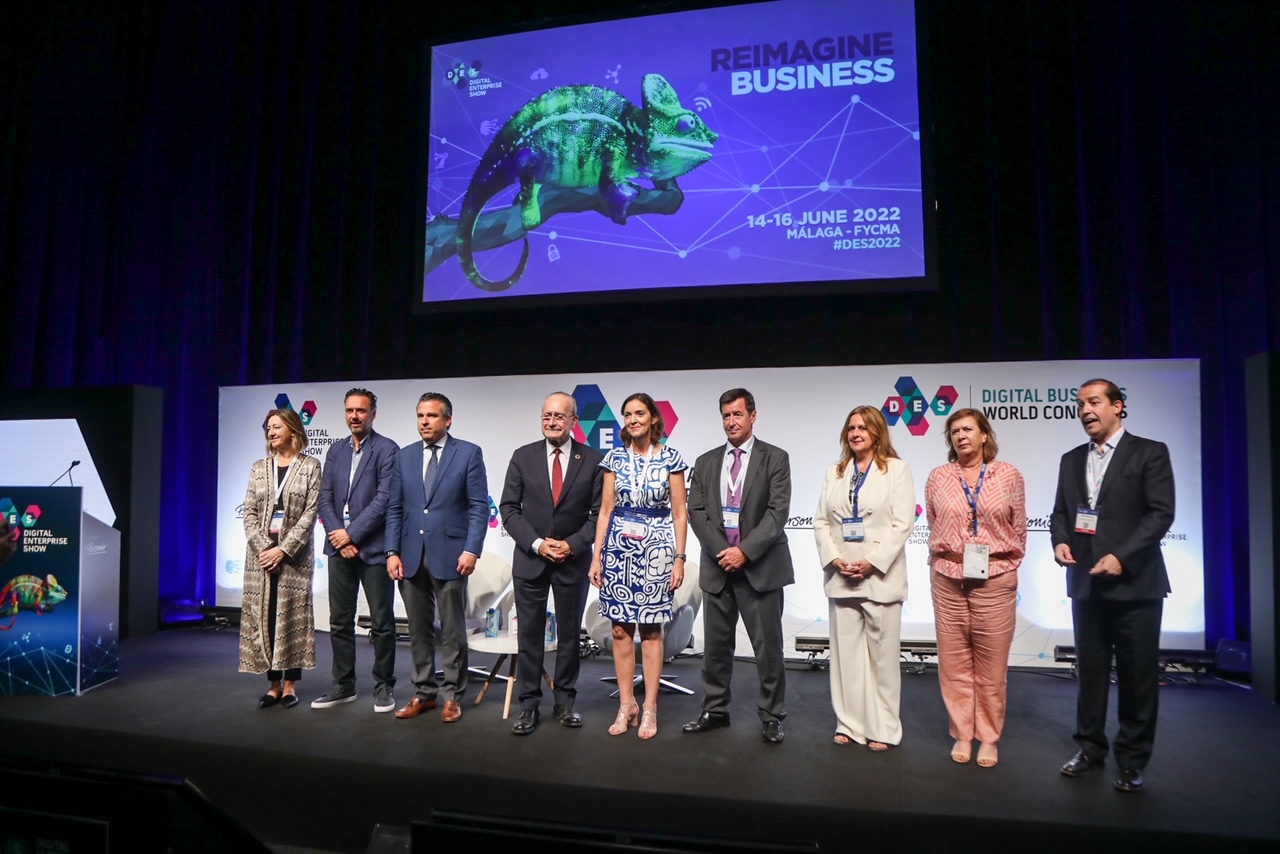 El alcalde de Málaga, Francisco de la Torre, junto a las concejalas de Promoción de la Ciudad y Captación de Inversiones, Rosa Sánchez, y de Innovación y Digitalización Urbana, Susana Carillo, ha asistido a la tercera y última jornada de Des-Digital Enterprise Show 2022 que ha albergado el Foro de Turismo de este evento, cuya apertura ha corrido a cargo de la ministra de Industria, Comercio y Turismo, Reyes Maroto. En el acto también han estado presentes el diputado de Desarrollo Tecnológico y Recursos Europeos de la Diputación de Málaga, Juan Álvarez; el director general de la Agencia Digital de Andalucía de la Junta de Andalucía, Raúl Jiménez; y la directora de DES-Digital Enterprise Show 2022, Sandra Infante. Tras la apertura del Foro, han recorrido distintos expositores.
