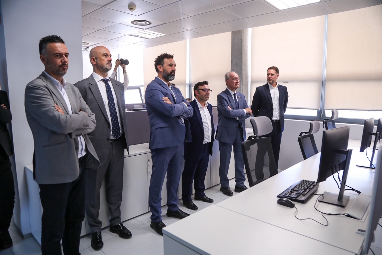 El alcalde de Málaga, Francisco de la Torre, ha asistido junto al director gerente de la Agencia Digital de Andalucía, Raúl Jiménez, y al CEO de Babel, Tony Olivo, a la presentación del nuevo centro de ciberseguridad internacional, Cibersecurity Global Hub, del Grupo Babel ubicado en el Málaga TechPark.