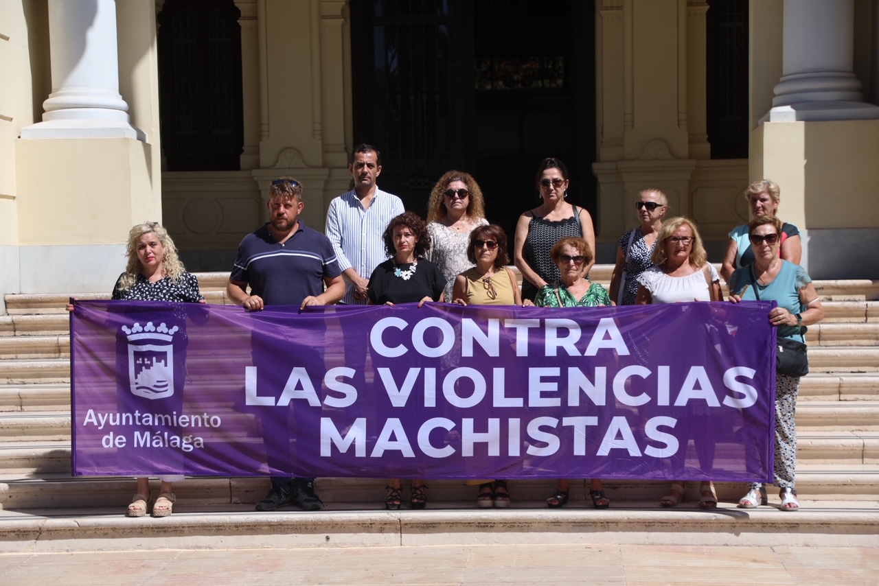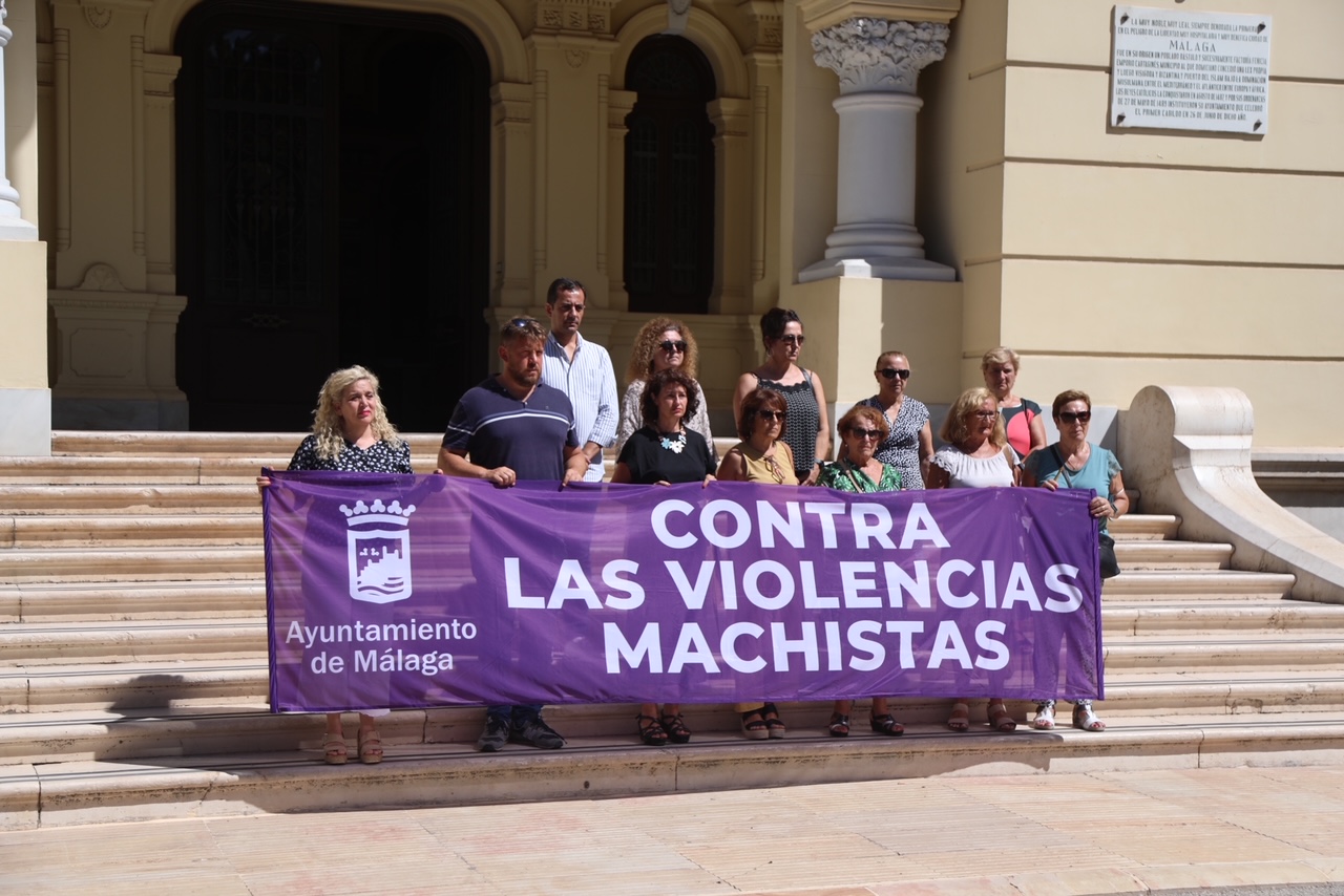 Miembros de la Corporación Municipal han mantenido un minuto de silencio en memoria de la última víctima de la violencia de género confirmada, mujer asesinada en Tenerife el pasado 29 de julio. El acto ha tenido lugar hoy , martes 2 de agosto, en las escaleras exteriores del edificio del Ayuntamiento de la Málaga.